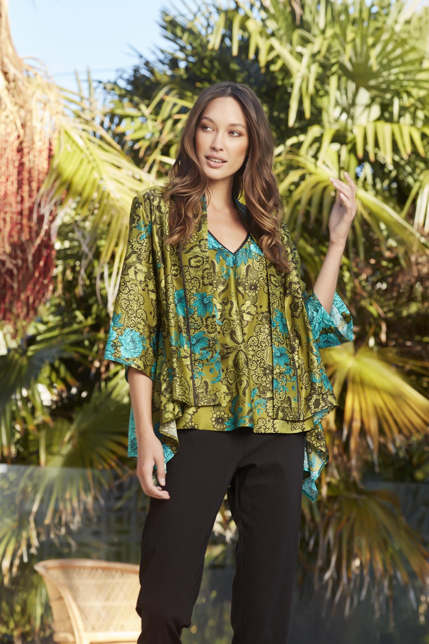 Acrobat 7/8 pant with basque waist and feature satin side panel. Made in our exclusive European lightweight stretch cotton Acrobat fabric for comfort, breathability and easy care.