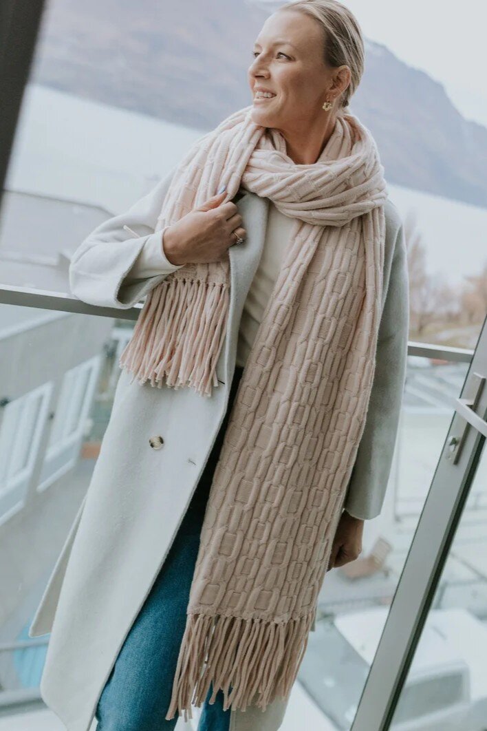 The Adele Cable Knit Scarf is a generously oversized winter essential designed to bring warmth and texture to cold-weather dressing. Crafted in a classic cable knit, it delivers cosy insulation while adding depth to any outfit.