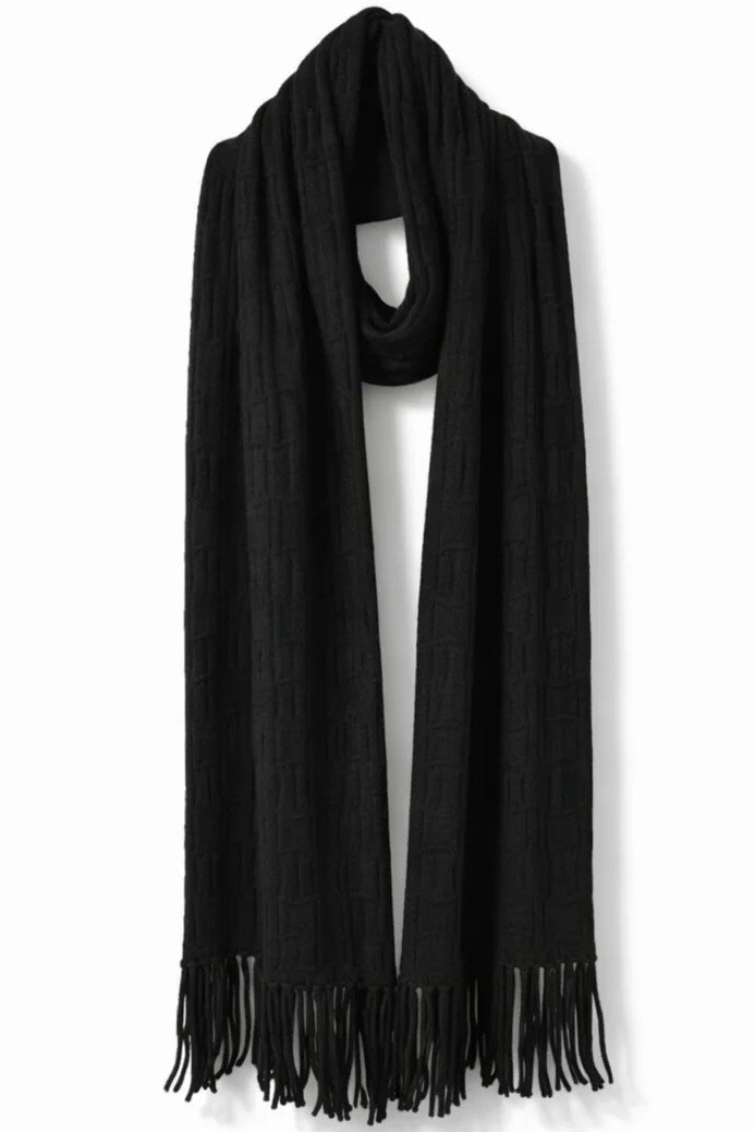 Soft, substantial, and beautifully proportioned, this women’s knit scarf wraps comfortably around the neck for extra coverage on colder days. Its larger size makes it perfect for layering over coats and jackets, creating a polished, winter-ready finish.
