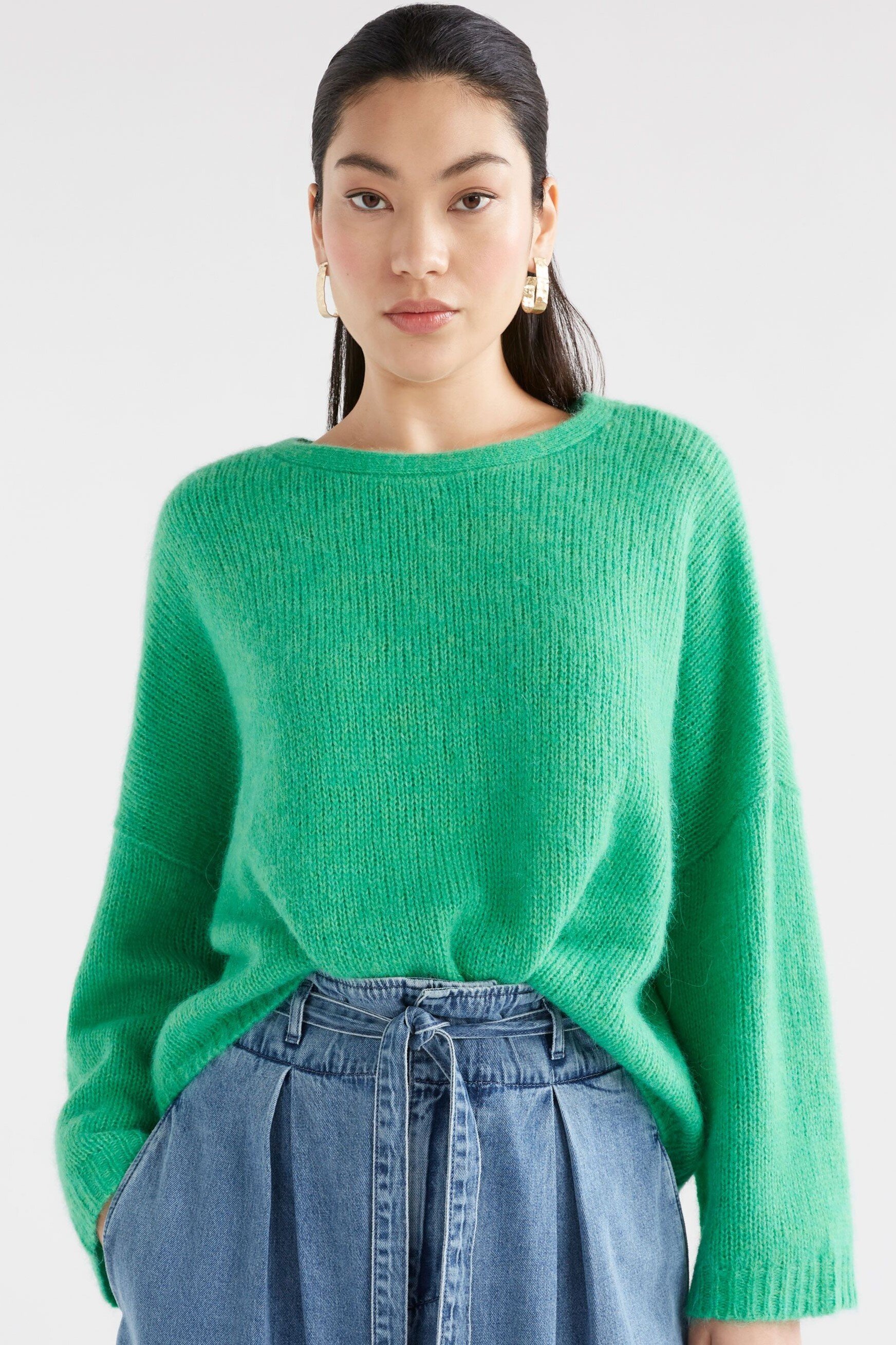 The Agna Sweater is a classic, best selling ELK style and a firm favourite of our team and customers. Appreciated for its laid back aesthetic and year-round wearability, this relaxed, boxy fit sweater features an exaggerated dropped shoulder and a fluted wide sleeve. Draping casually across the body, this sweater is crafted from a soft, comfortable alpaca-wool blend yarn.