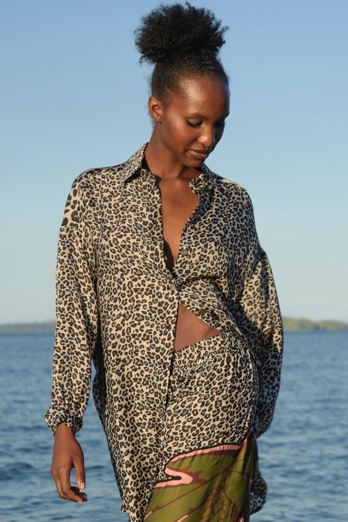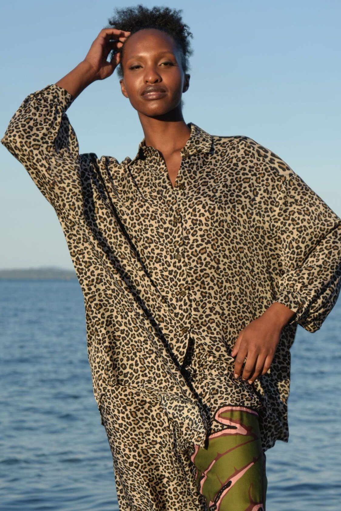 Put a high-fashion spin on the wardrobe classic button-down. Crafted in the bold ‘Spot Off the Press’ viscose satin, the ‘Anything but Ordinary’ shirt sports a fashion forward oversized fit, lending itself perfectly to effortless, smart-casual dressing. Sporting a button through front and a long-line silhouette this shirt works perfectly half tucked to show off your favourite trousers or worn loose and relaxed for an off-duty vibe.