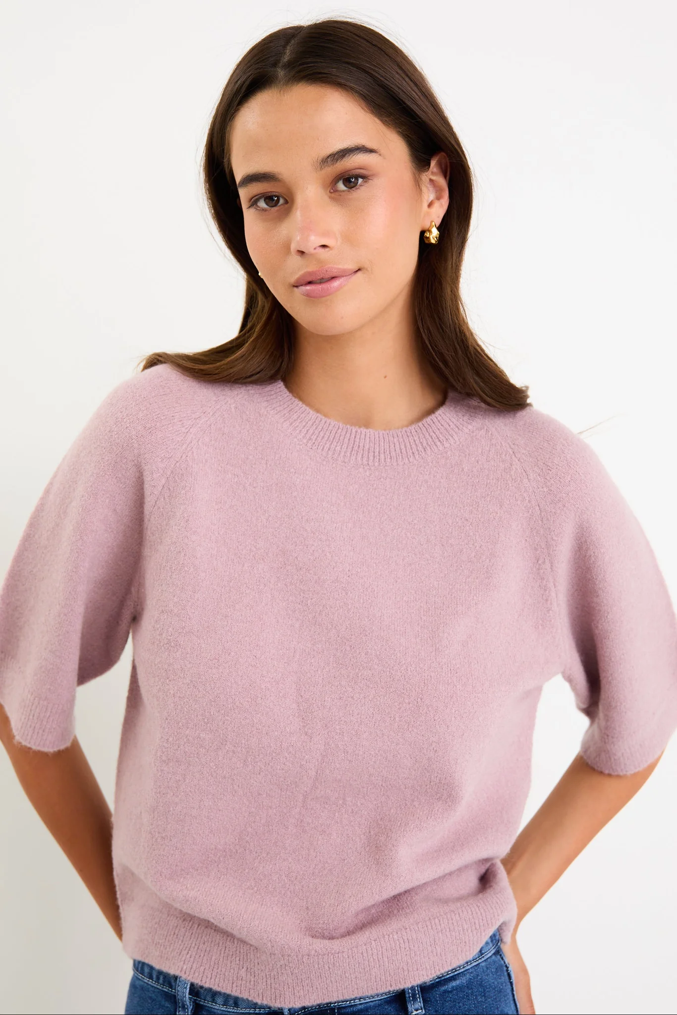 A soft, easy wear knit that brings a touch of luxury to everyday dressing. The Assemble Blush Alpaca Blend Tee has a relaxed drape with raglan sleeves and a gentle crew neckline, giving you that cosy elevated feel without the bulk. Perfect for pairing with denim or layering under a blazer.
