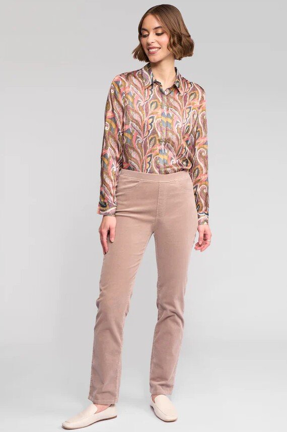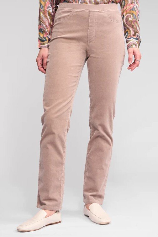 Full-length slim pant in a soft stretch pinwale cord, designed in our Twig shade - a refined beigey-pink-mushroom tone that pairs effortlessly with neutrals. This pull-on style features an elasticated waistband for everyday comfort and is finished with clean, minimal detailing such as a faux fly, faux front pockets, and back patch pockets.