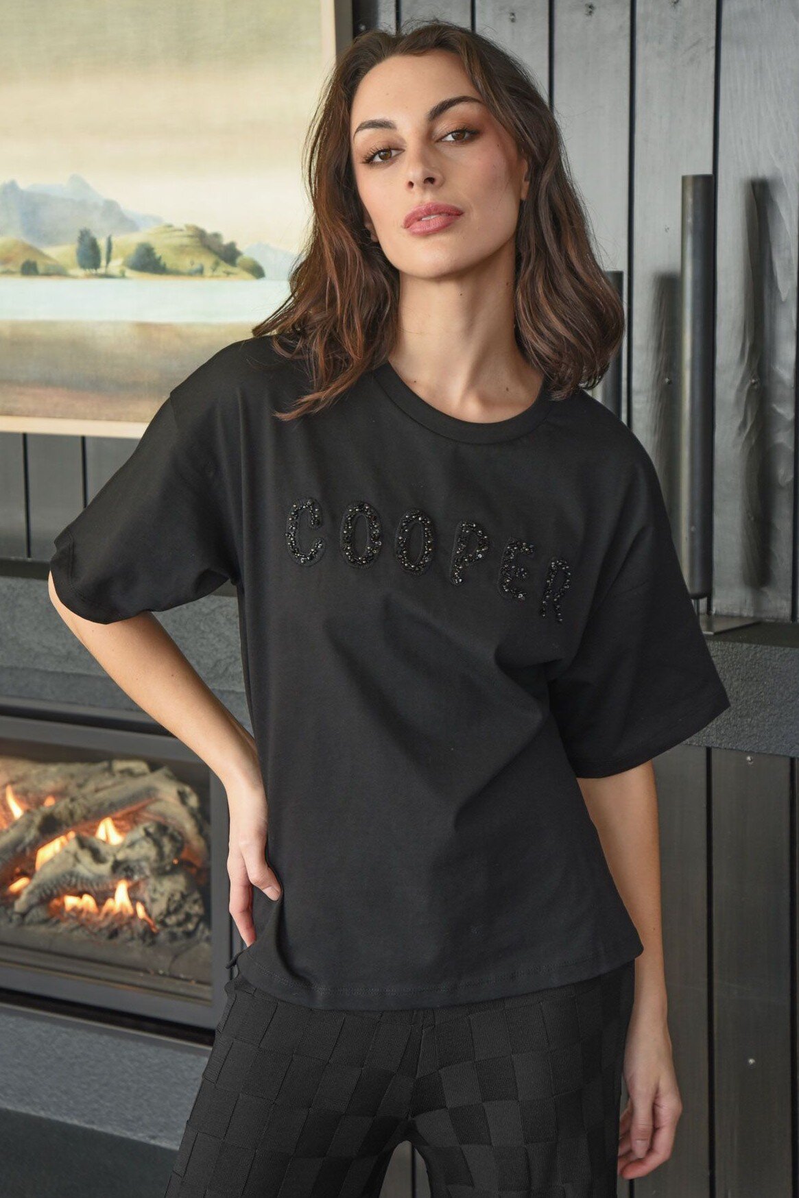 Beaded to perfection, the ‘Beading Lady’ top is an elevated essential. Featuring a beaded logo embellished front, adding just the right amount of sparkle to your everyday style. Crafted from the soft breathable cotton of the ‘Spill the Tee’ the relaxed fit keeps it effortless, while the intricate beadwork brings a touch of luxury.