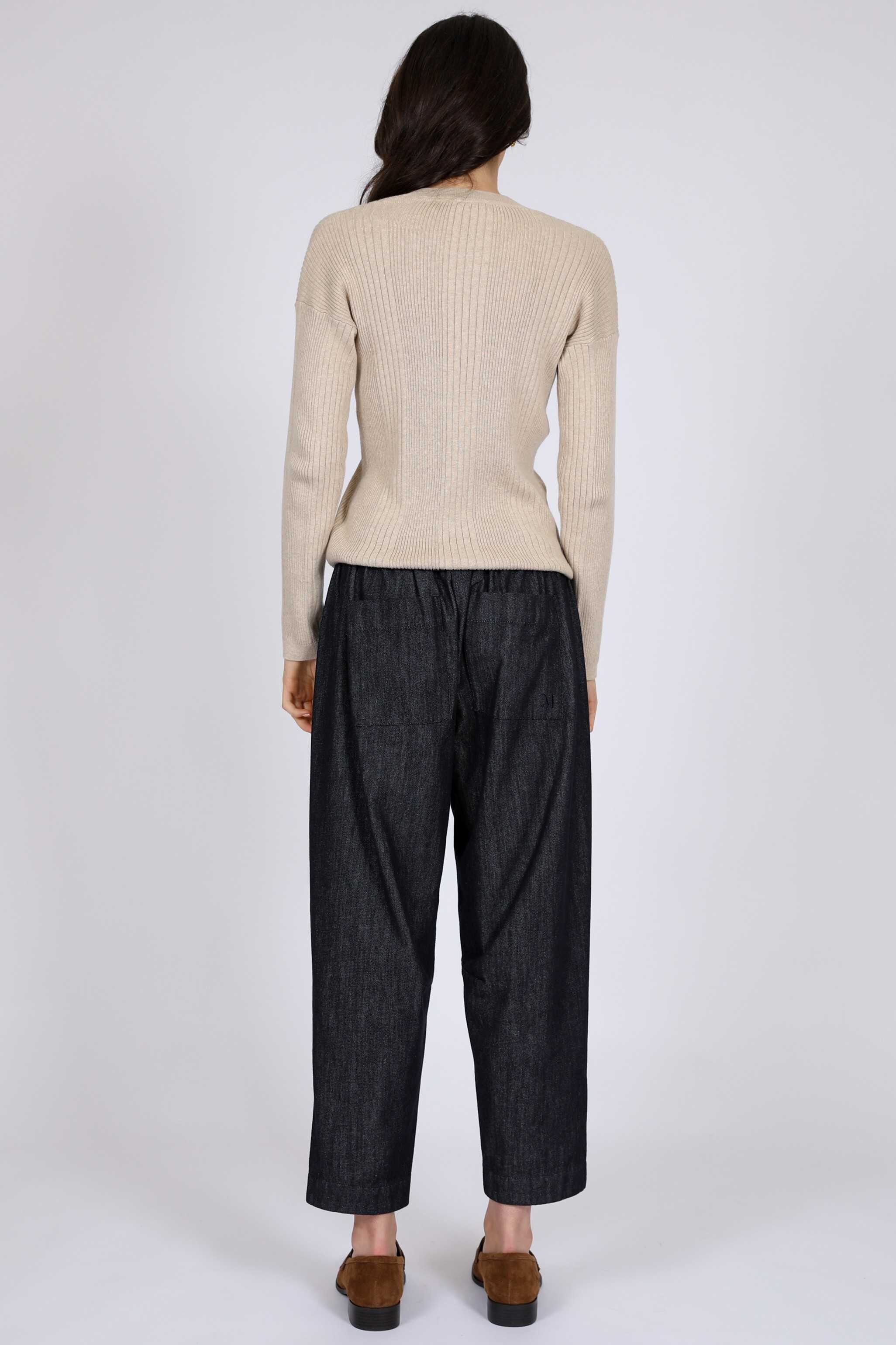 Our Beam Barrel Pant in Dark Wash is crafted from 100% breathable cotton.