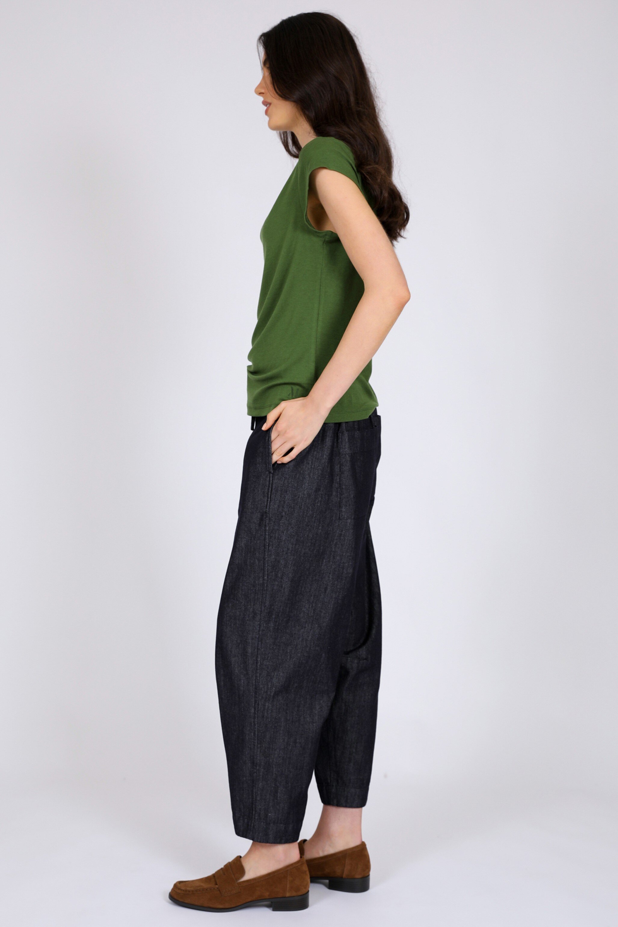 Designed in a relaxed fit with a subtle barrel silhouette, it’s finished with knee darts for gentle shaping.