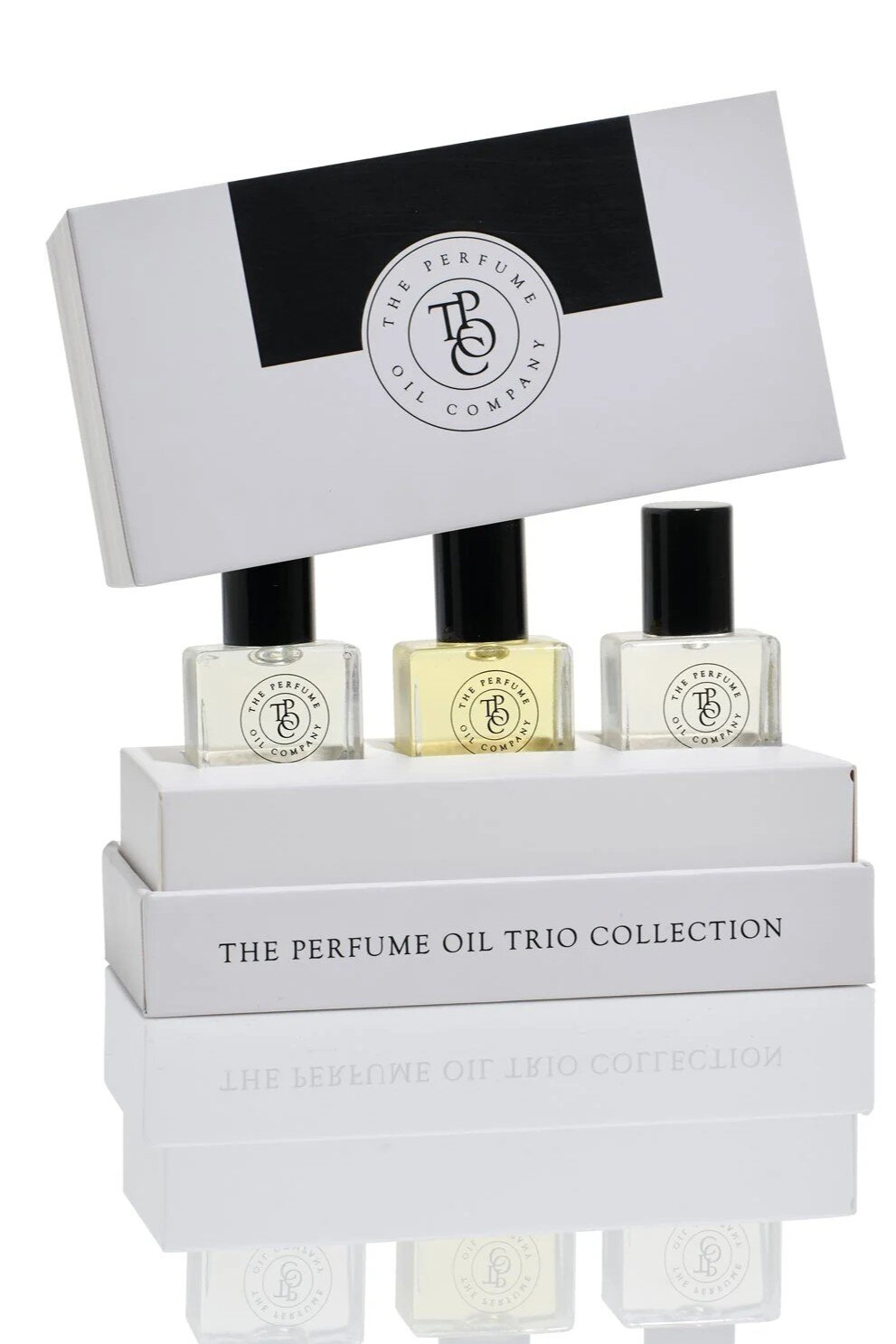 A three piece gift box containing a trio of 5mL top-selling fragrances within a category.