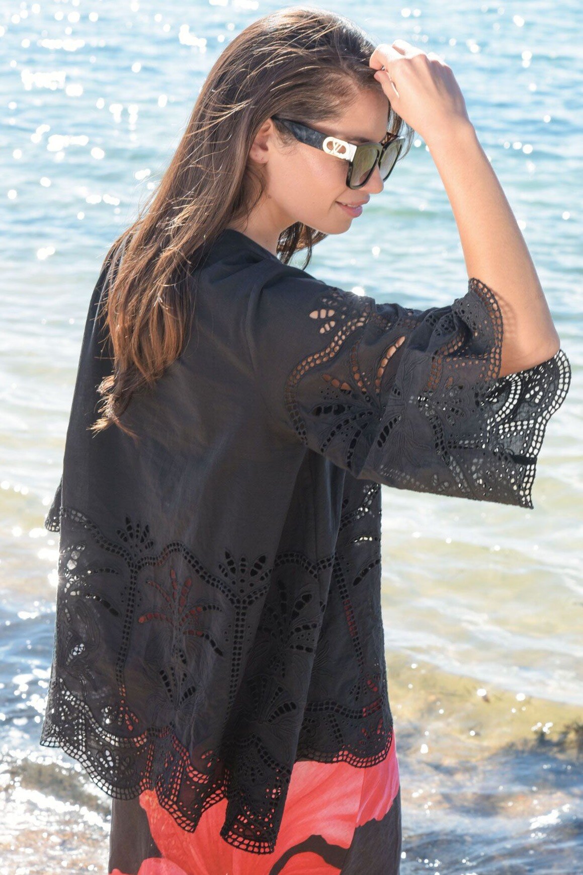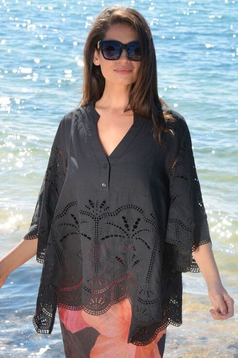 Radiating summer perfection, the ‘Border Control’ top is a seasonal staple. Designed in the tropical inspired ‘Feeling Crabulous’ cotton broderie anglaise, this top sports a whimsical swing silhouette, and full coverage sleeves making it a comfortable choice for bright, warm days. Pair this with the ‘Haute to Trot’ pant for the perfect co-ord.