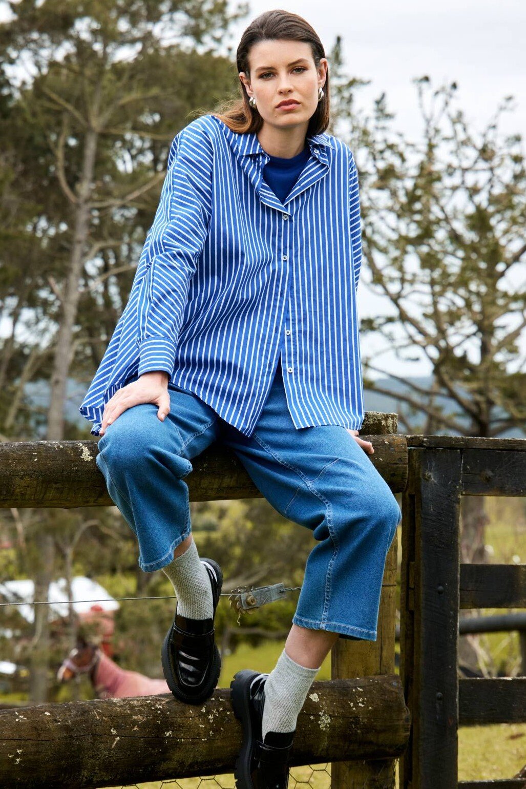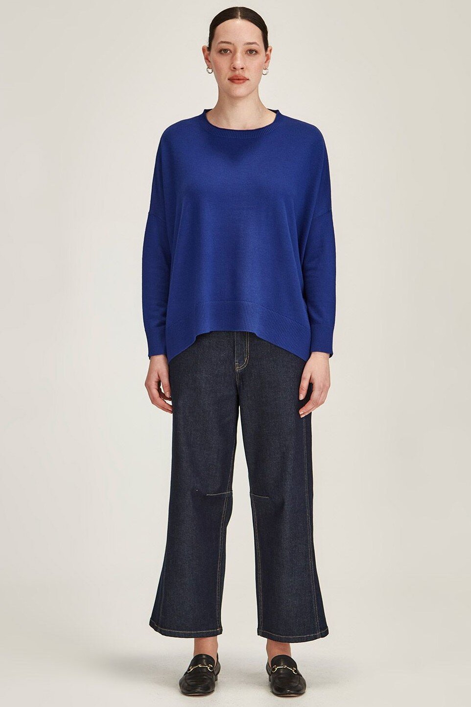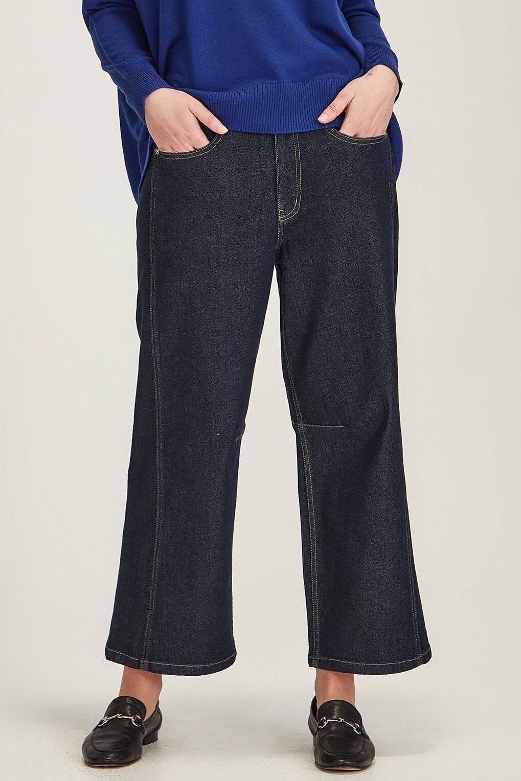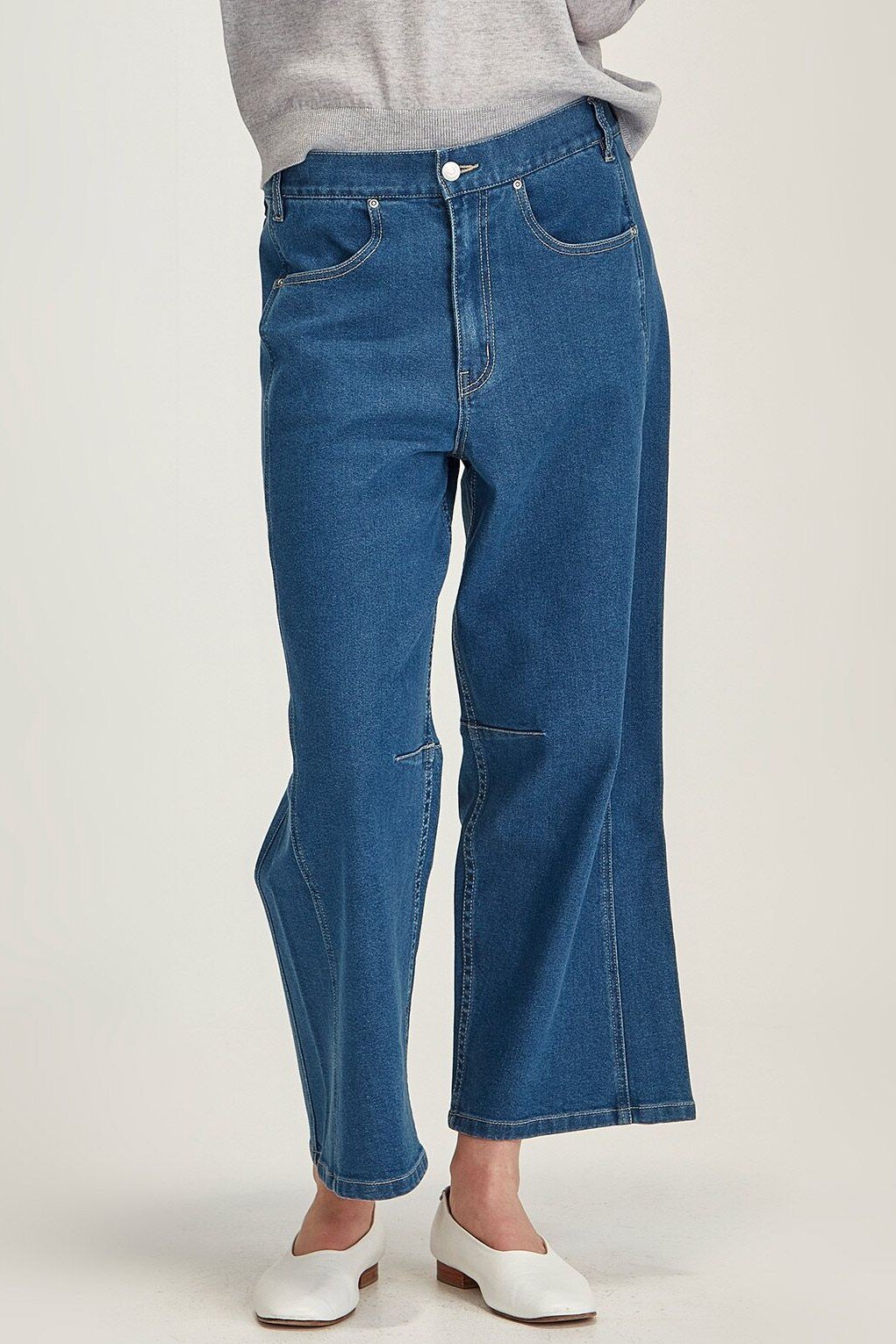 The coveted Branwell Jeans are back this season. An on-trend barrel leg shape made in our trusted Milwood denim. Mid rise waistHalf elastic waistButton and zip front openingHip front pocketsBack patch pocketsKnee DartsBarrel legComposition: 58% Cotton, 20% Tencel, 12% Modal, (.5% Recycled Polyester, 0.5% Elastane