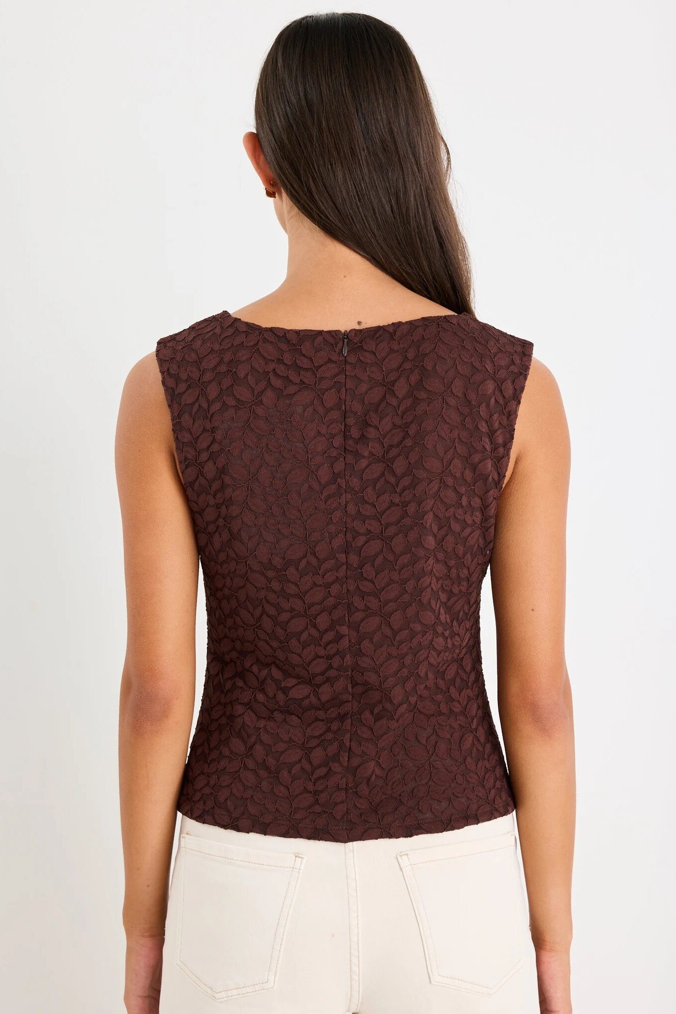 Crafted in delicate chocolate lace with a soft lining, it’s fitted through the body for a sculpted silhouette that is effortlessly flattering.