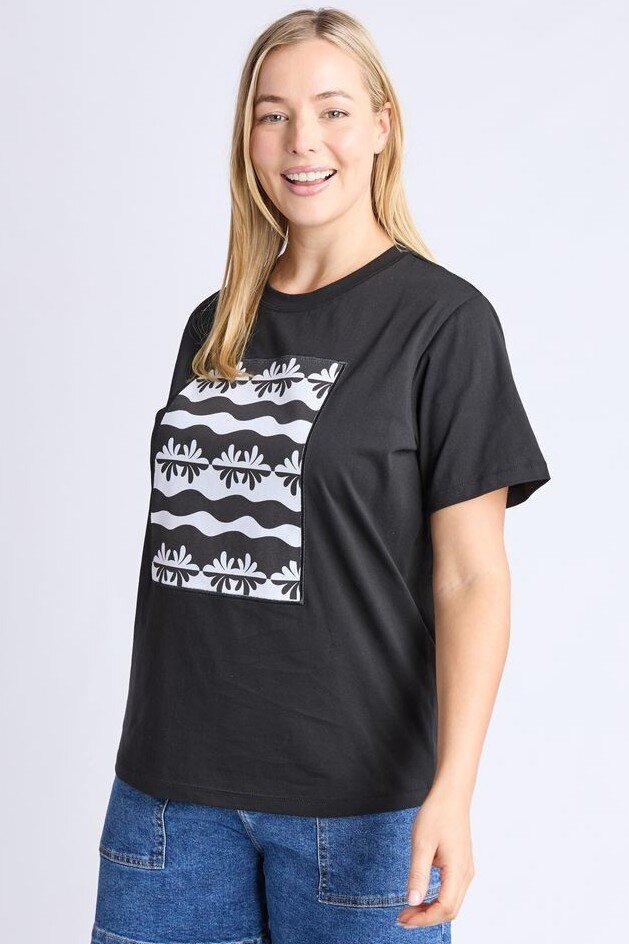 Meet Casa, a stunning black & cream print exclusive to Elm. The new Casa Tee features a stunning graphic designed by the talented Elm Designers and is a statement tee that will pair perfectly with your favourite denim or up style with a pair of black shorts for a put together Summer look!
