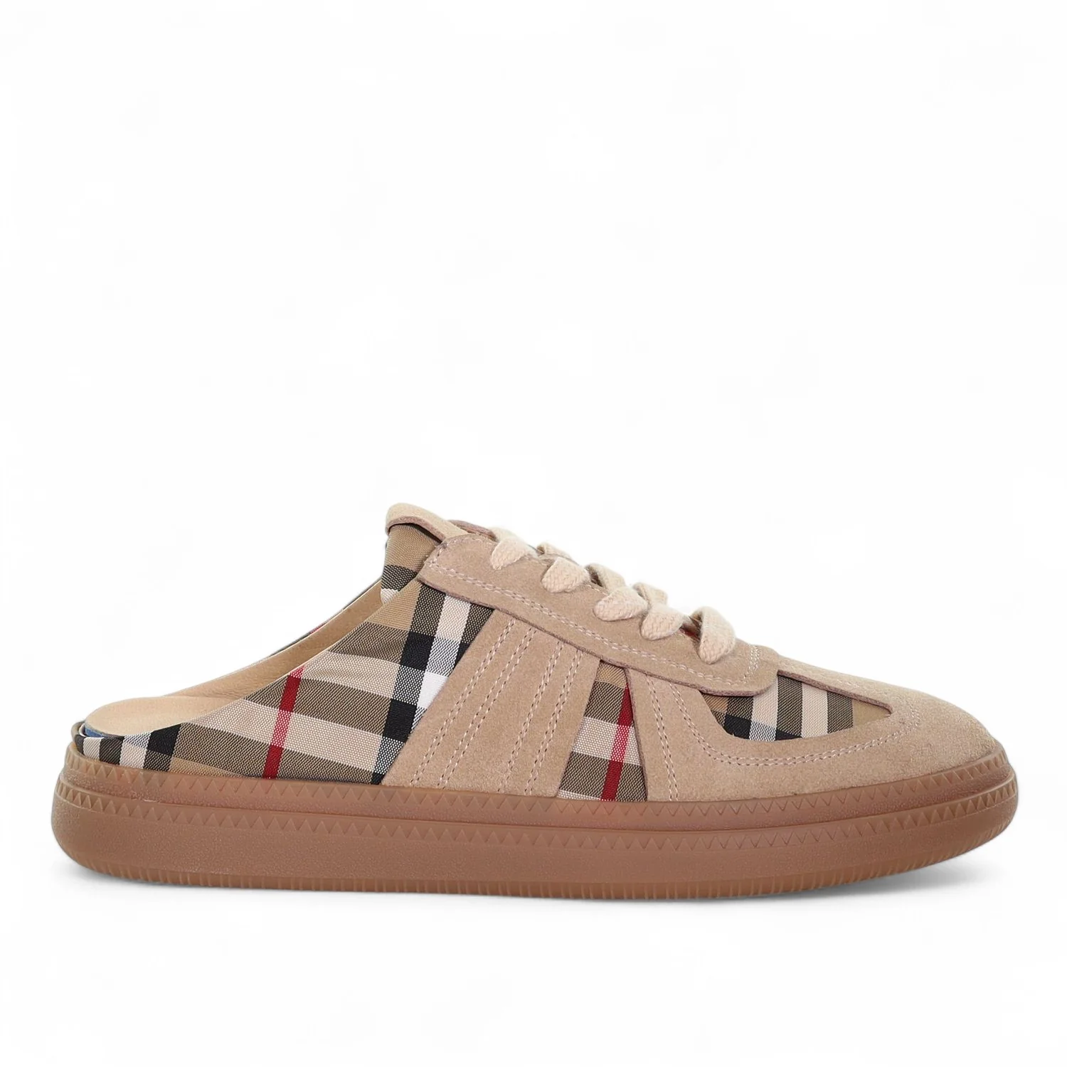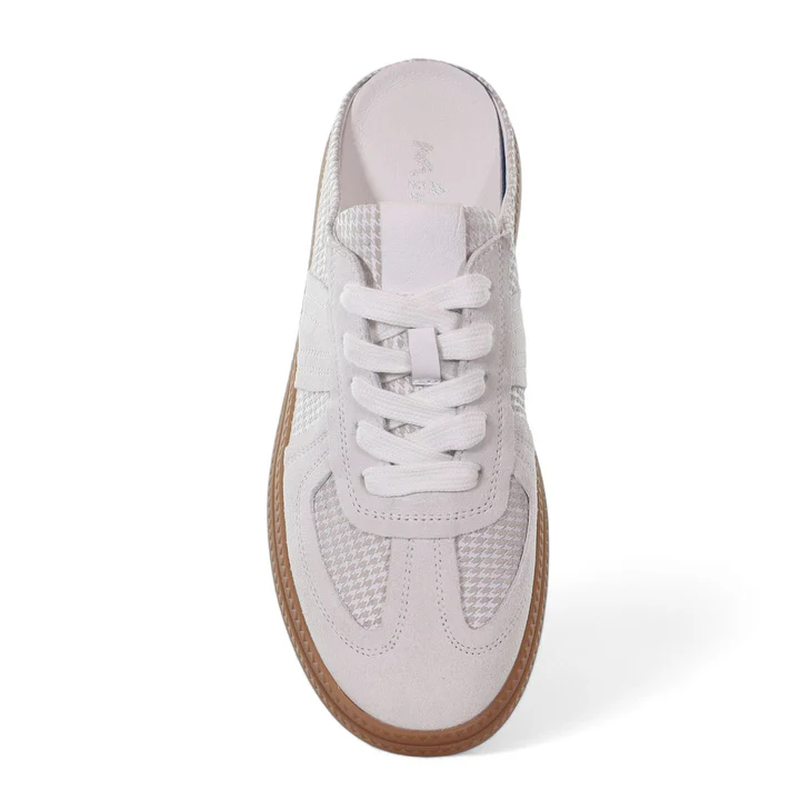Chase Me is the sneaker that slips on as easily as summer itself. This open-back style blends the fuss-free comfort of a mule with the street-smart look of a lace-up. Finished in soft suede leather with panelled detailing and a fresh new gum sole give it a modern, wearable finish.. Choose from camel suede and check accents or fresh white suede with a tonal check print. Lightweight, easy and endlessly wearable it keeps things breezy while still looking polished.