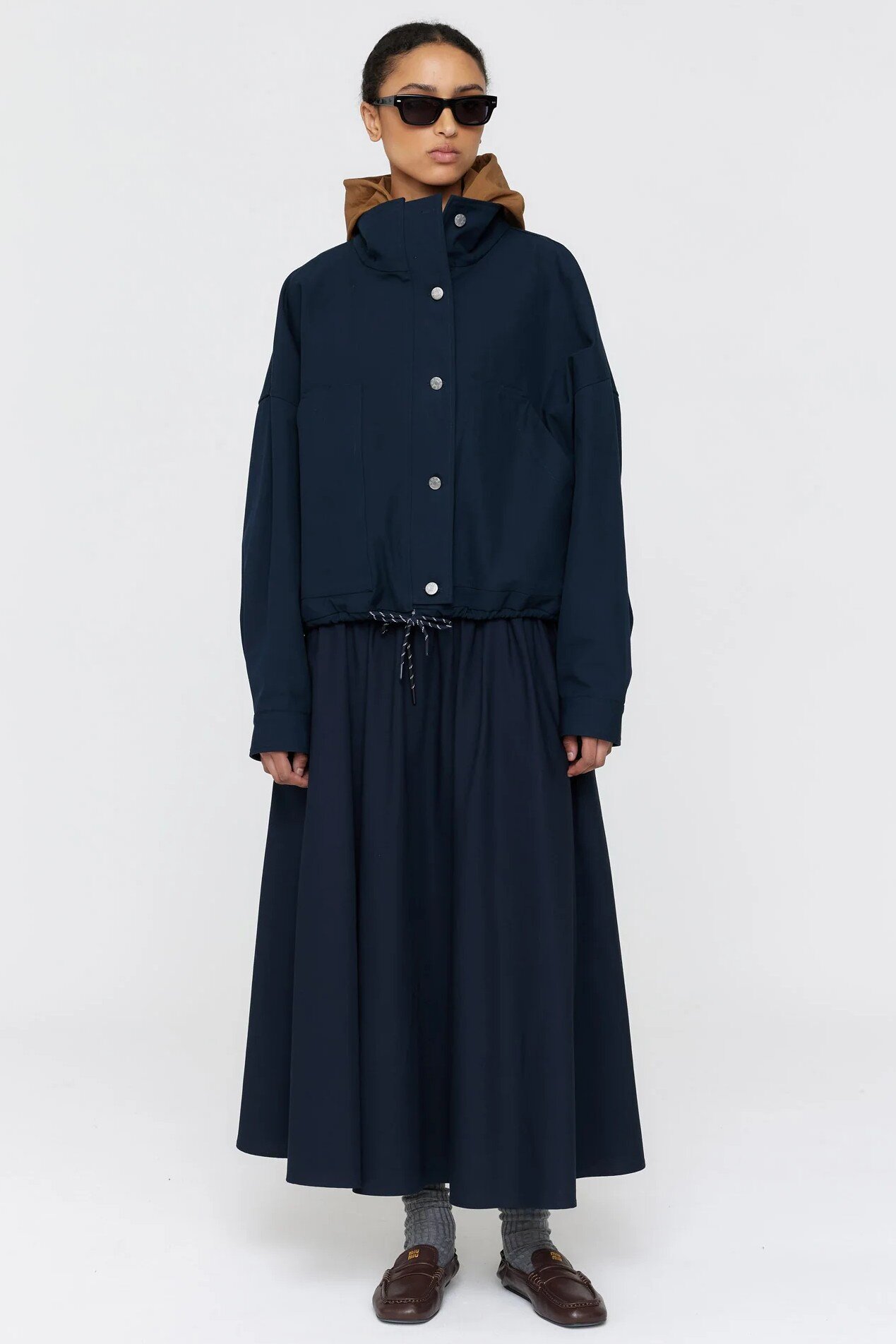 Experience the perfect balance of fashion and functionality with the Damir Jacket. Crafted with a hjean tack front fastening, and roomy patch pockets, this cropped jacket offers both style and practicality. The drawstring waist adds a flattering touch, while the heavy cotton material ensures durability and comfort. Detachable cotton hood with contrast sporty ties.