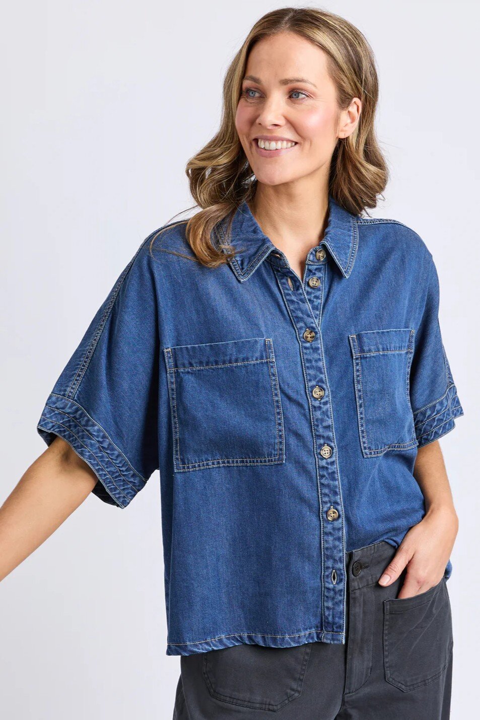 Look no further, this denim shirt mixes the softness of lyocell with Elm classic denim making this an easy everyday choice.