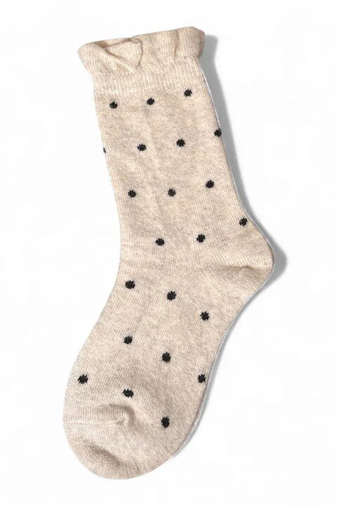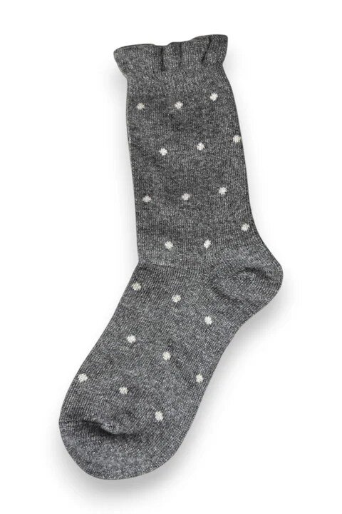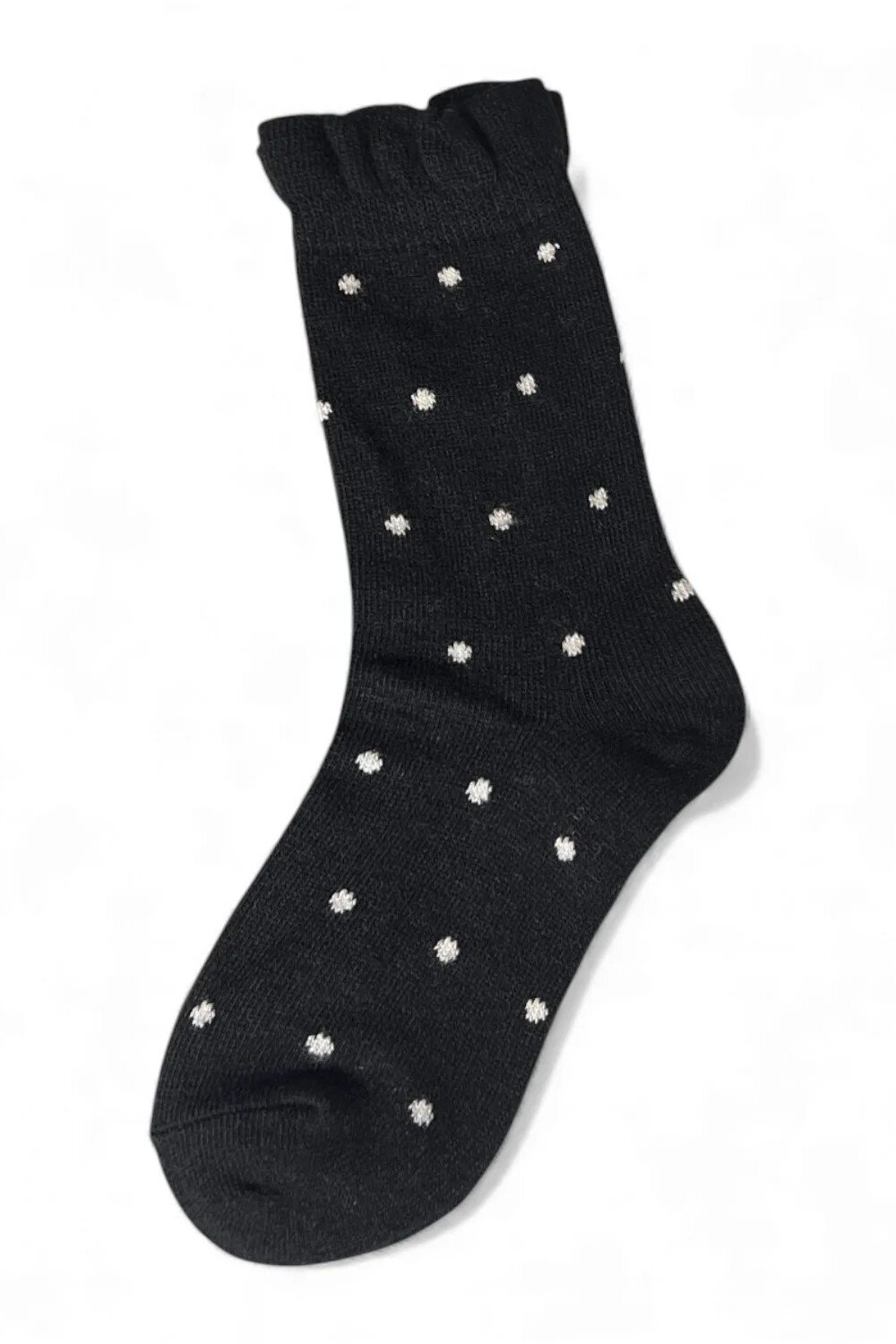 A delicate frill cuff peeks sweetly above your shoe, while the classic polka dot design keeps things timeless and easy to style. Perfect with loafers, sneakers or layered under boots for that subtle statement detail.