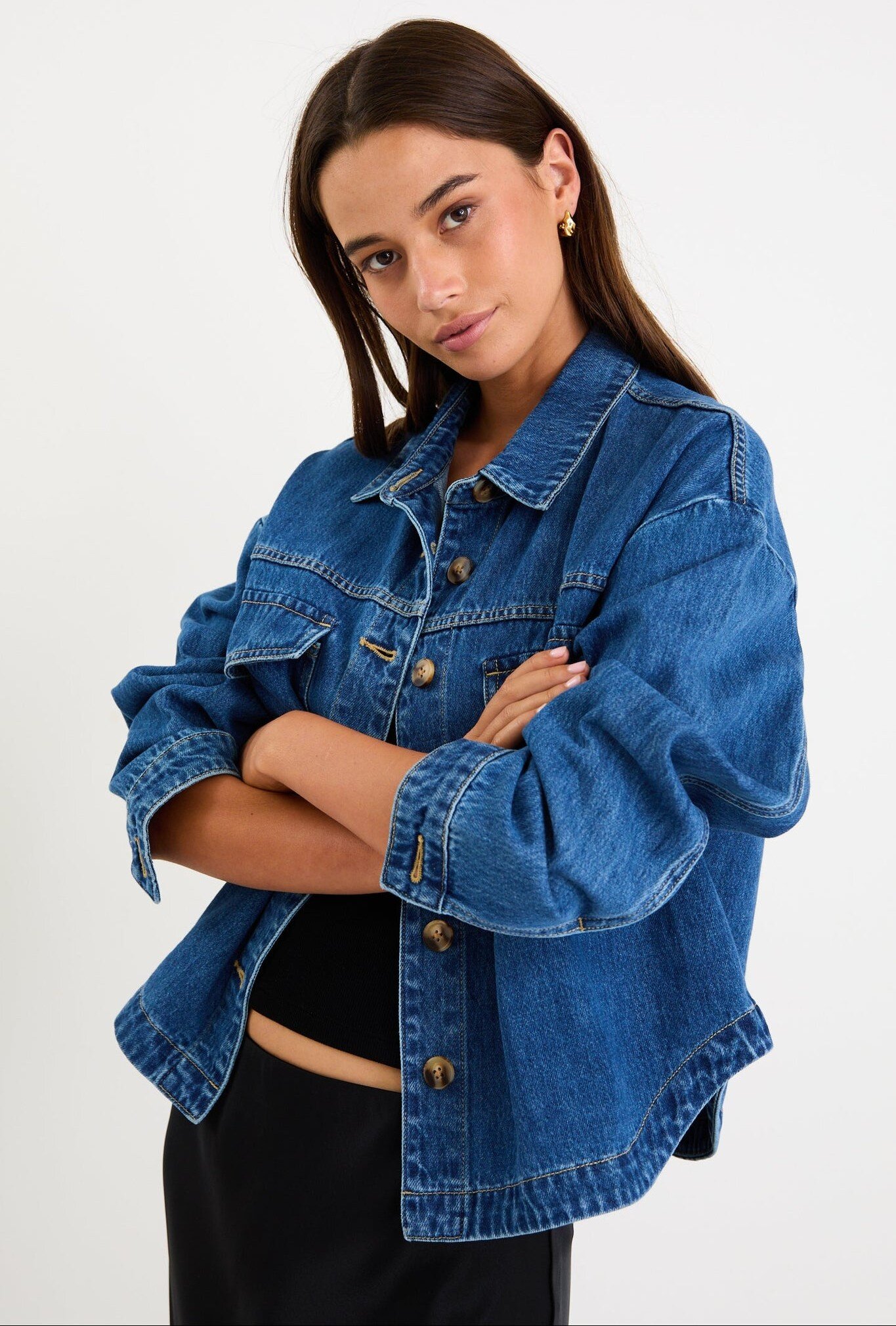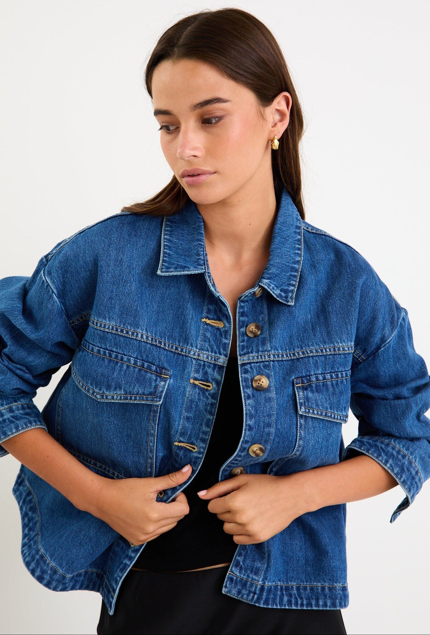 Pair it with wide leg jeans for a double denim look or layer over dresses when you want an easy extra layer.