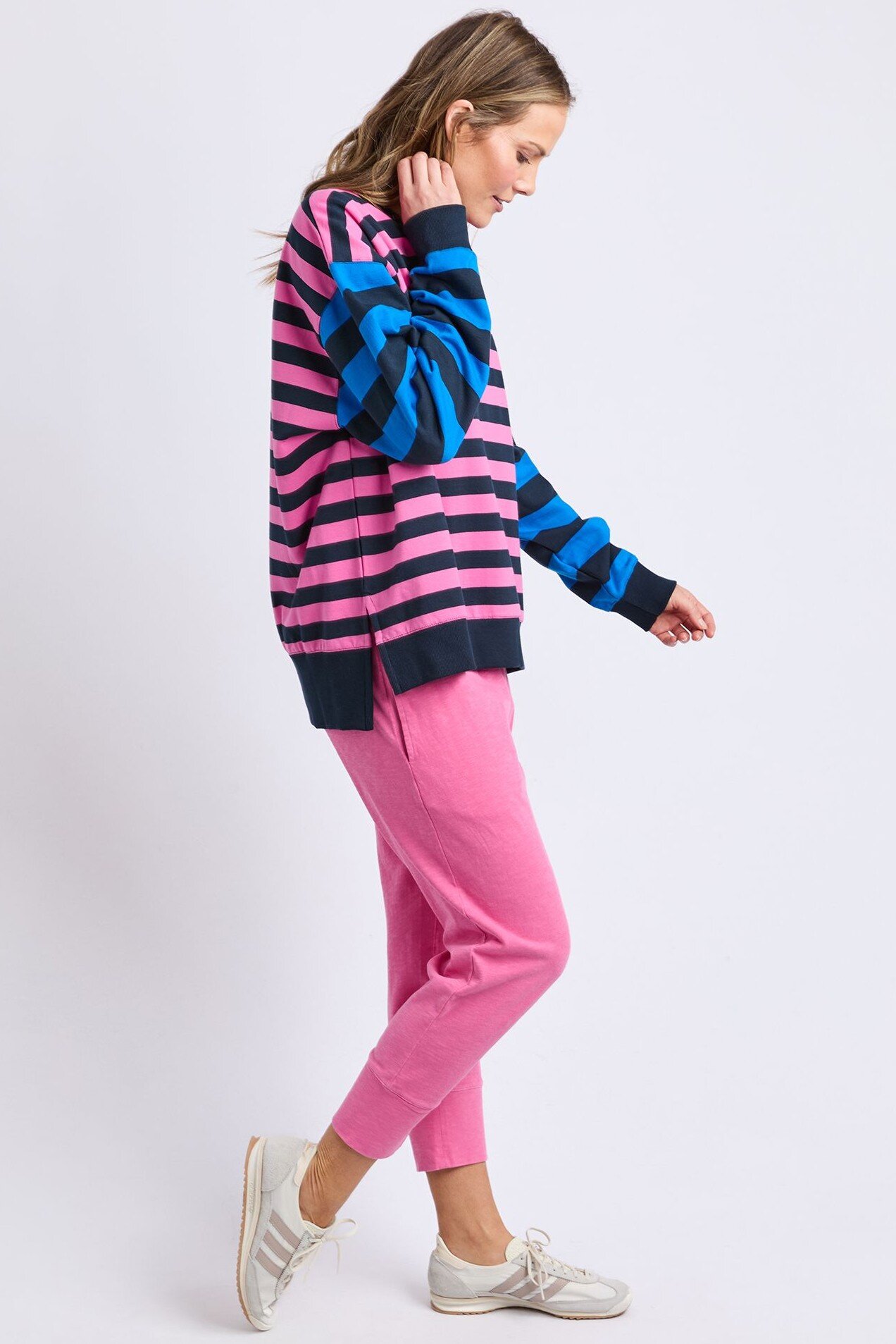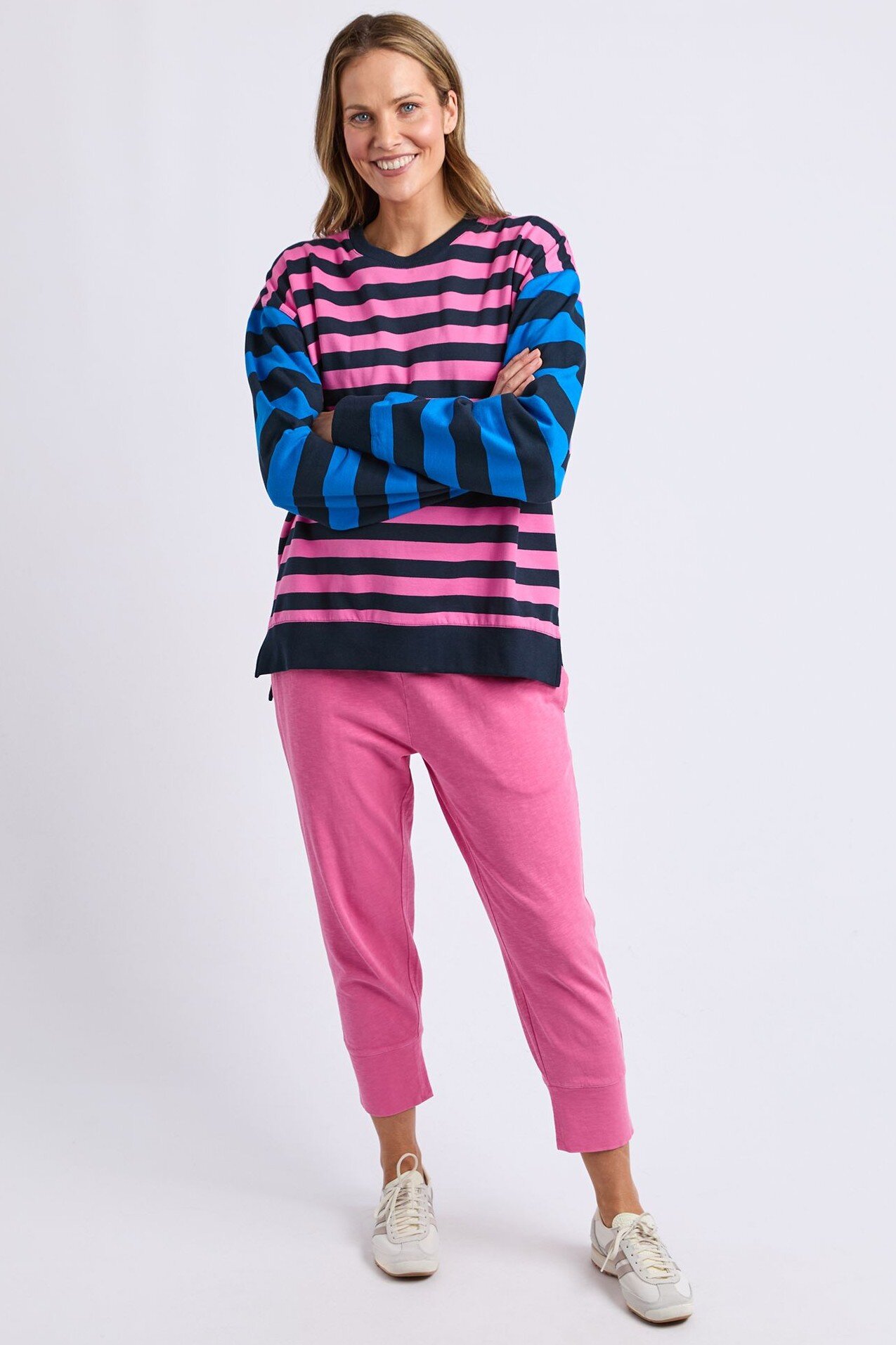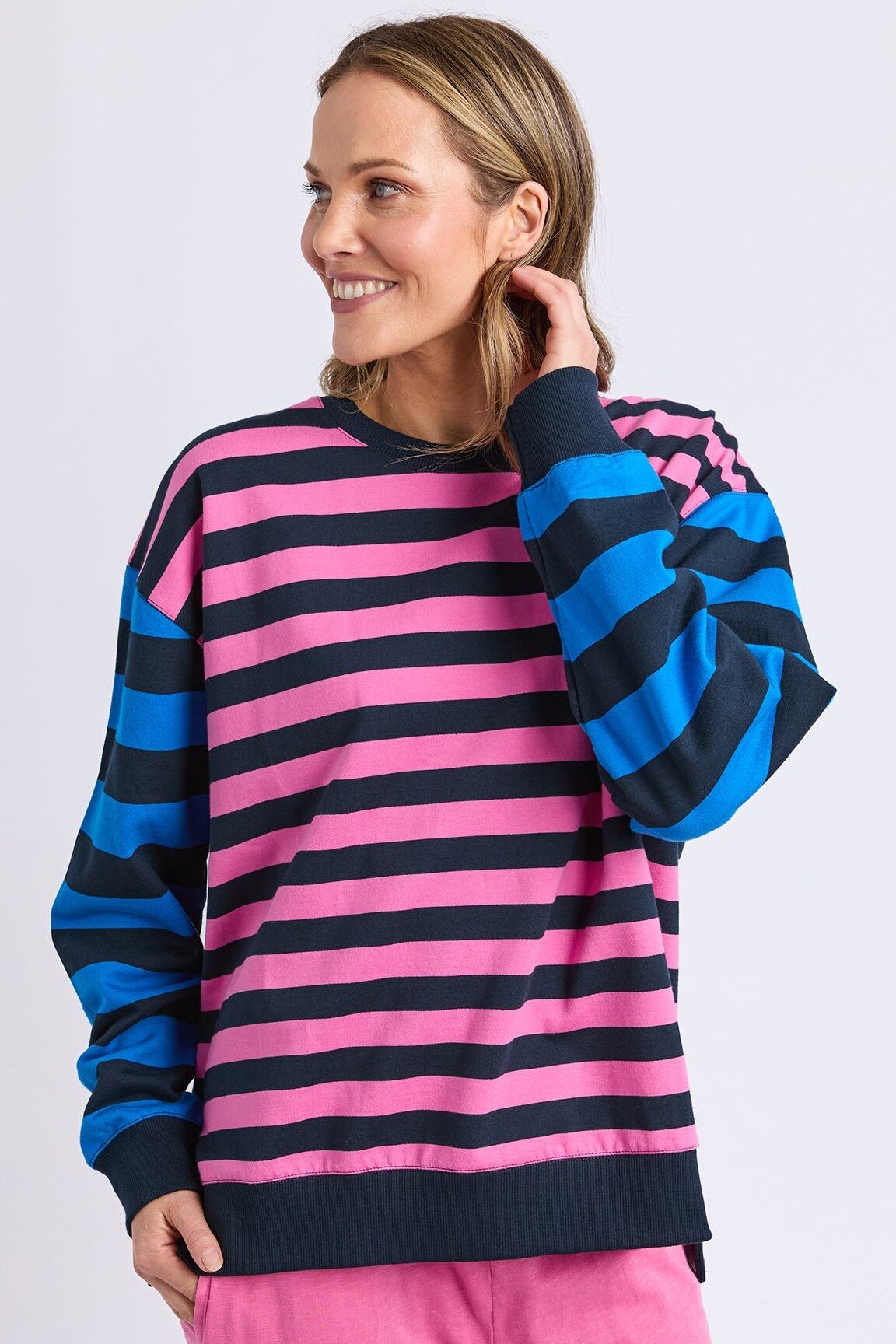 The Elm Eden Crew is a fun, feel-good layer with a relaxed fit and bold stripe detail. Easy to throw on and instantly uplifting, it’s perfect with denim, joggers or layered over a tee for everyday wear.
