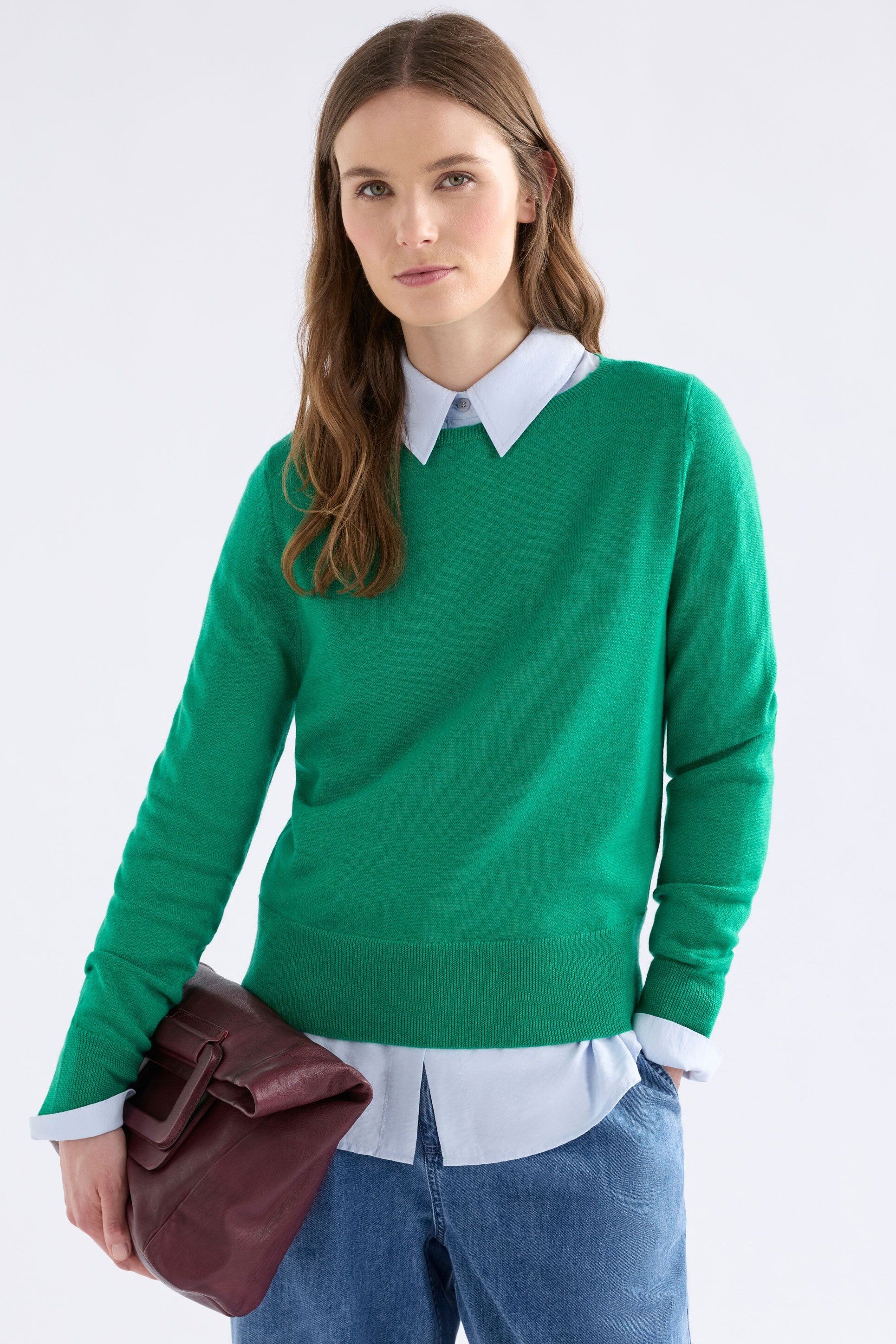 The Ellora Sweater is classic knit crafted from 100% fine merino wool. A regular to neat fit sweater with subtle boat neckline, long set-in sleeves, and ribbed cuffs, hem and neckline. This versatile sweater is lightweight yet warm and breathable. Perfect for layering and trans-seasonal wear, layer over shirts and tees and pair with your favourite denim for casual days or tailored trousers or skirts for more elevated outfitting.