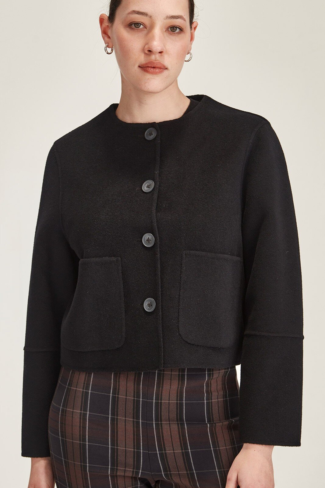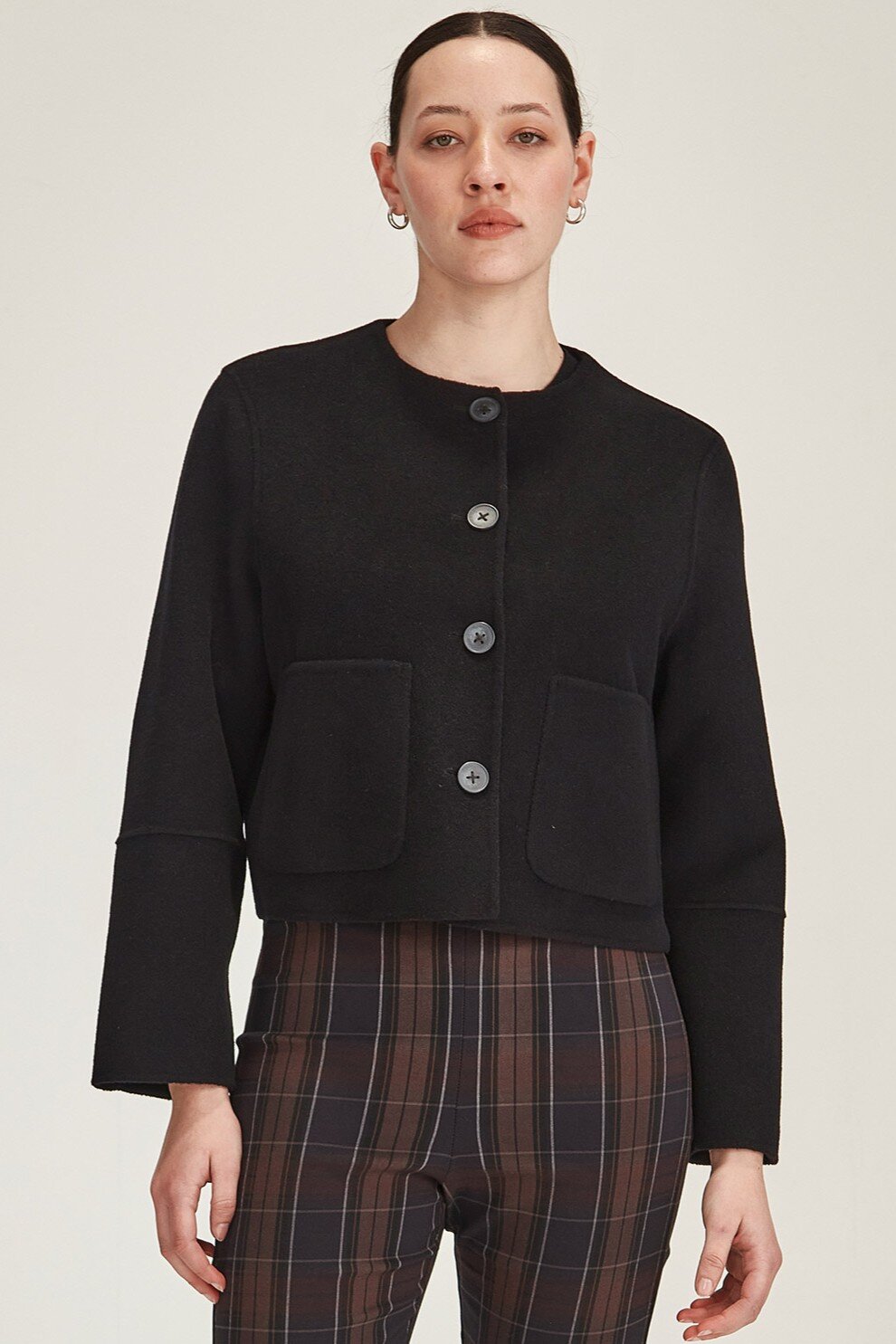 A collarless cropped jacket that blends the sophistication of a blazer with the laid-back charm of a jacket - the Emiko is cropped jacket, crafted from a wool and cashmere blend, with a luxuriously soft hand feel.
