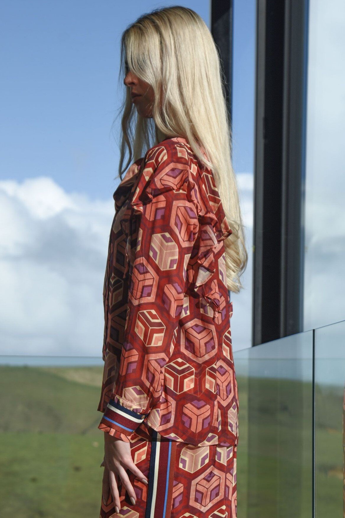 Effortlessly chic and subtly dramatic, the ‘Empress-Ive Tie’ top is the perfect balance of style and sophistication. Crafted from the flowing georgette of our ‘Bold and Beautiful’ fabrication, feminine frill caps at the shoulders add a playful, romantic touch, while the grosgrain trim at cuffs introduce a tailored finish. A delicate necktie completes the look offering a touch of timeless elegance. Perfect for dressing up or down, this versatile piece pairs beautifully with everything.