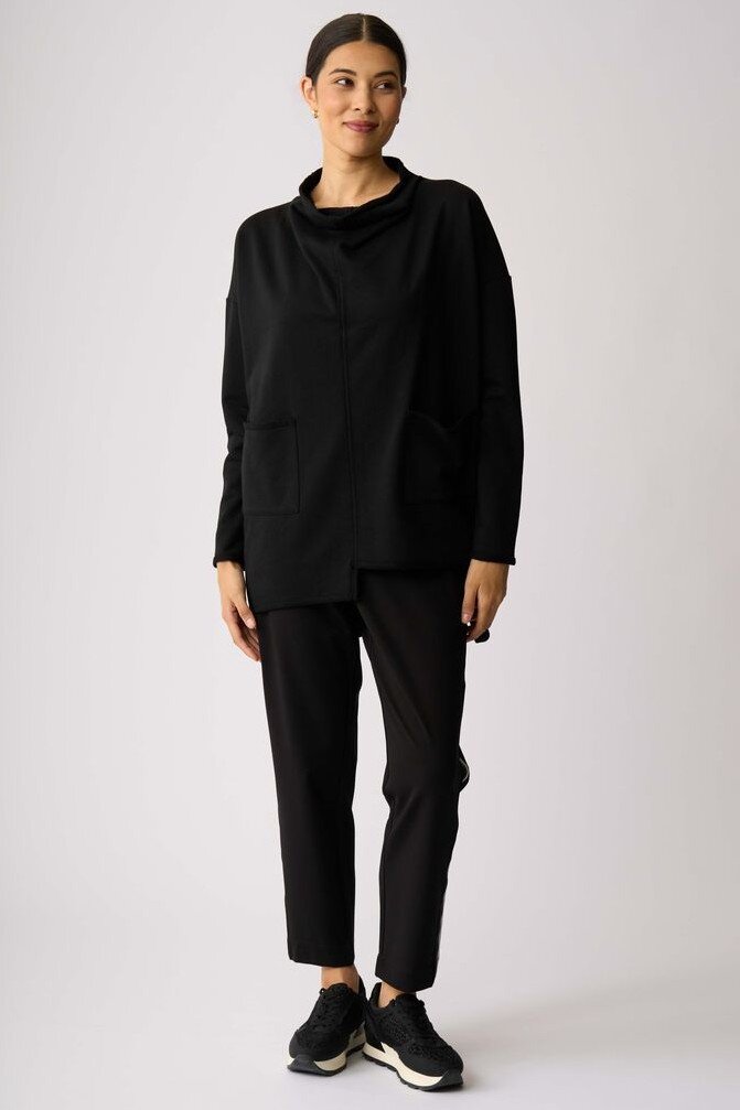 Relaxed fit jumper with a slouch neck collarExposed seam detailing2 front patch pockets and long sleevesComposition: 100% Cotton