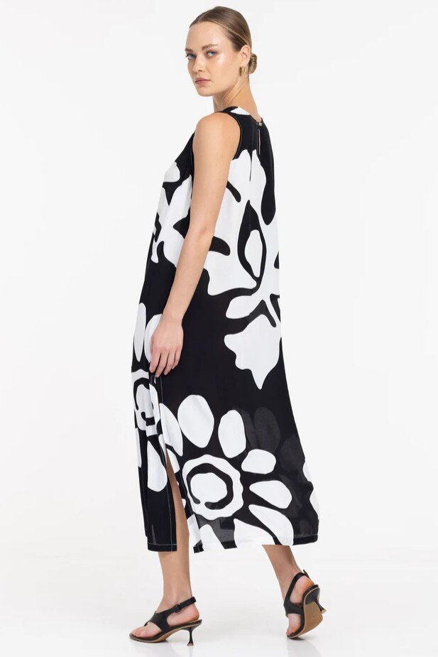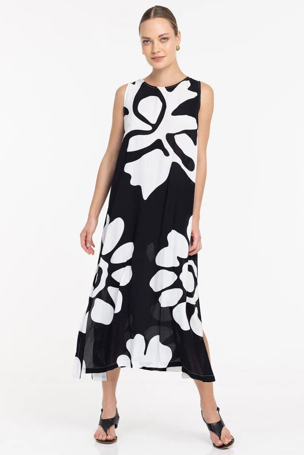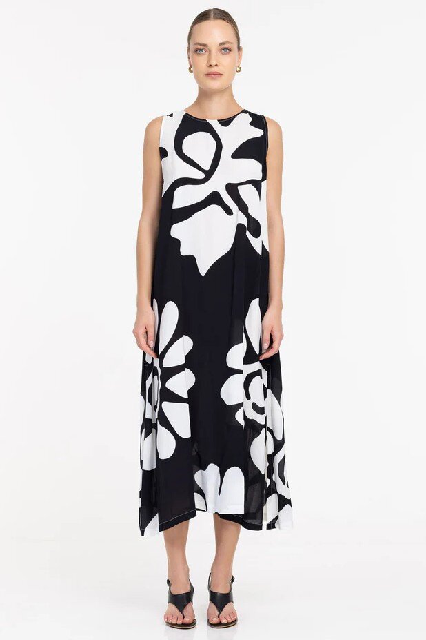 Crafted in lightweight viscose and finished in our exclusive Black/White Flower Print, it offers instant impact with minimal effort.