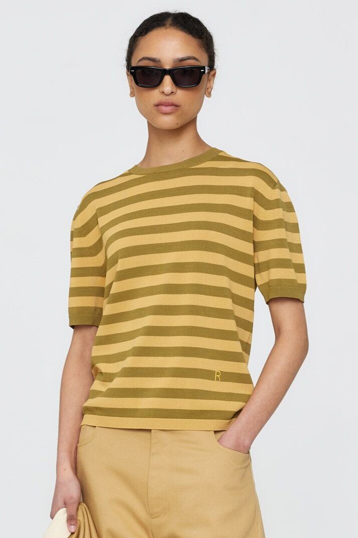 Expertly crafted with high-quality viscose nylon material, the Francisco Knit Tee offers exceptional comfort and design. Its crew-neck and horizontal stripe design add a stylish touch to this must-have knitted tee.