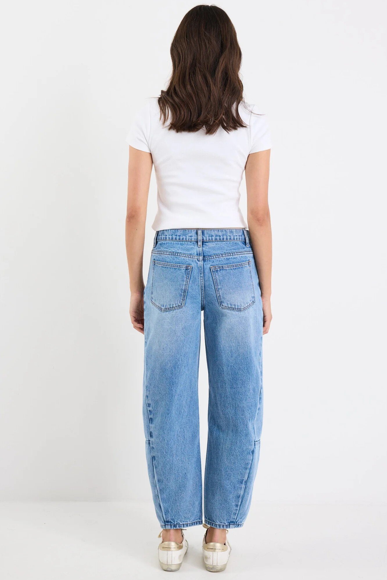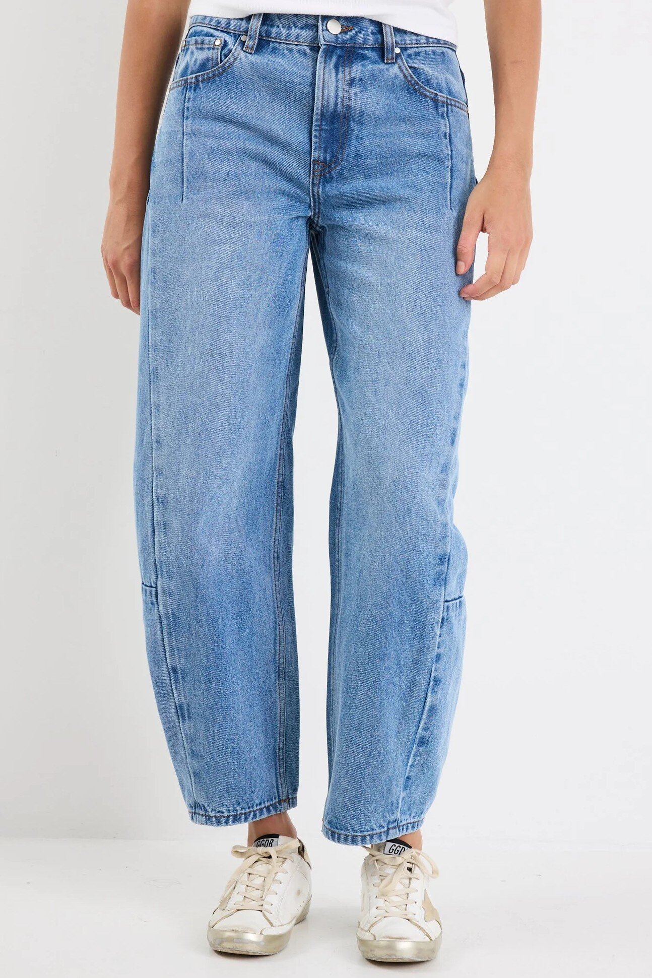 These barrel-leg jeans are your go-to for an effortlessly cool 90s silhouette. Designed in a rigid, non-stretch cotton, they offer structure and vintage authenticity in a soft mid-wash.