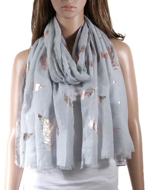 Grey Gold Feather Scarf