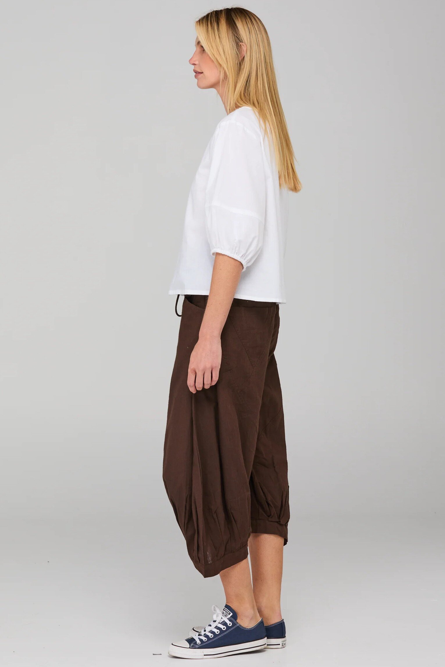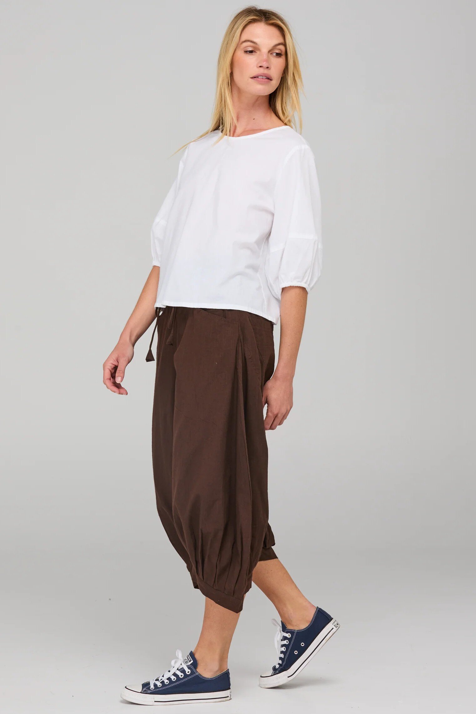 The Boom Shankar Guru Pant is a 3/4 length loose-fitting pant perfect for everyday wear. This style is fitted at the waist with a relaxed, balloon-style leg for ultimate comfort. These 100% cotton best sellers can be worn with just about anything! For the cooler months team them with boots and as the weather warms pair them with sandals or flats and they will take you right through the seasons!