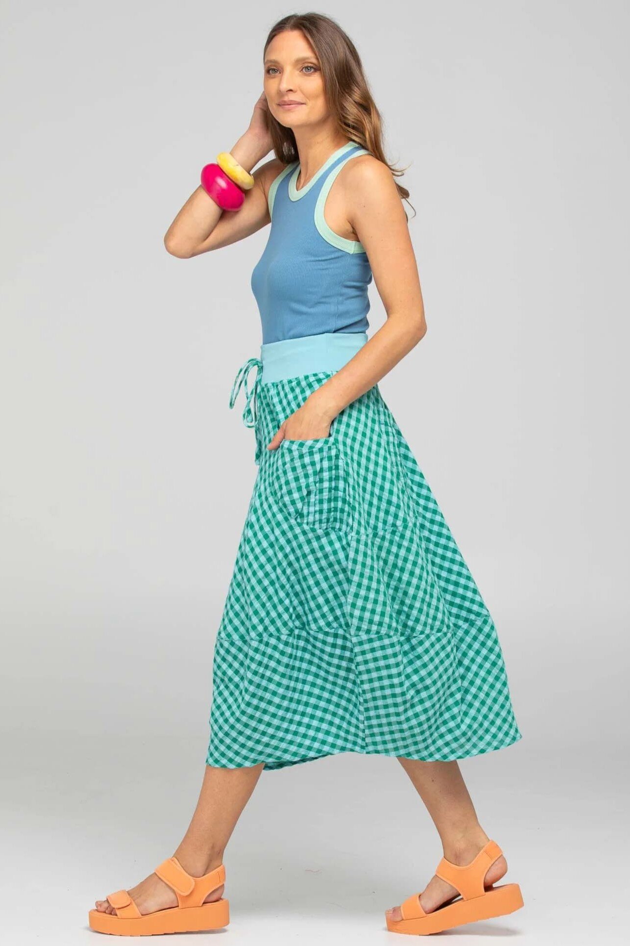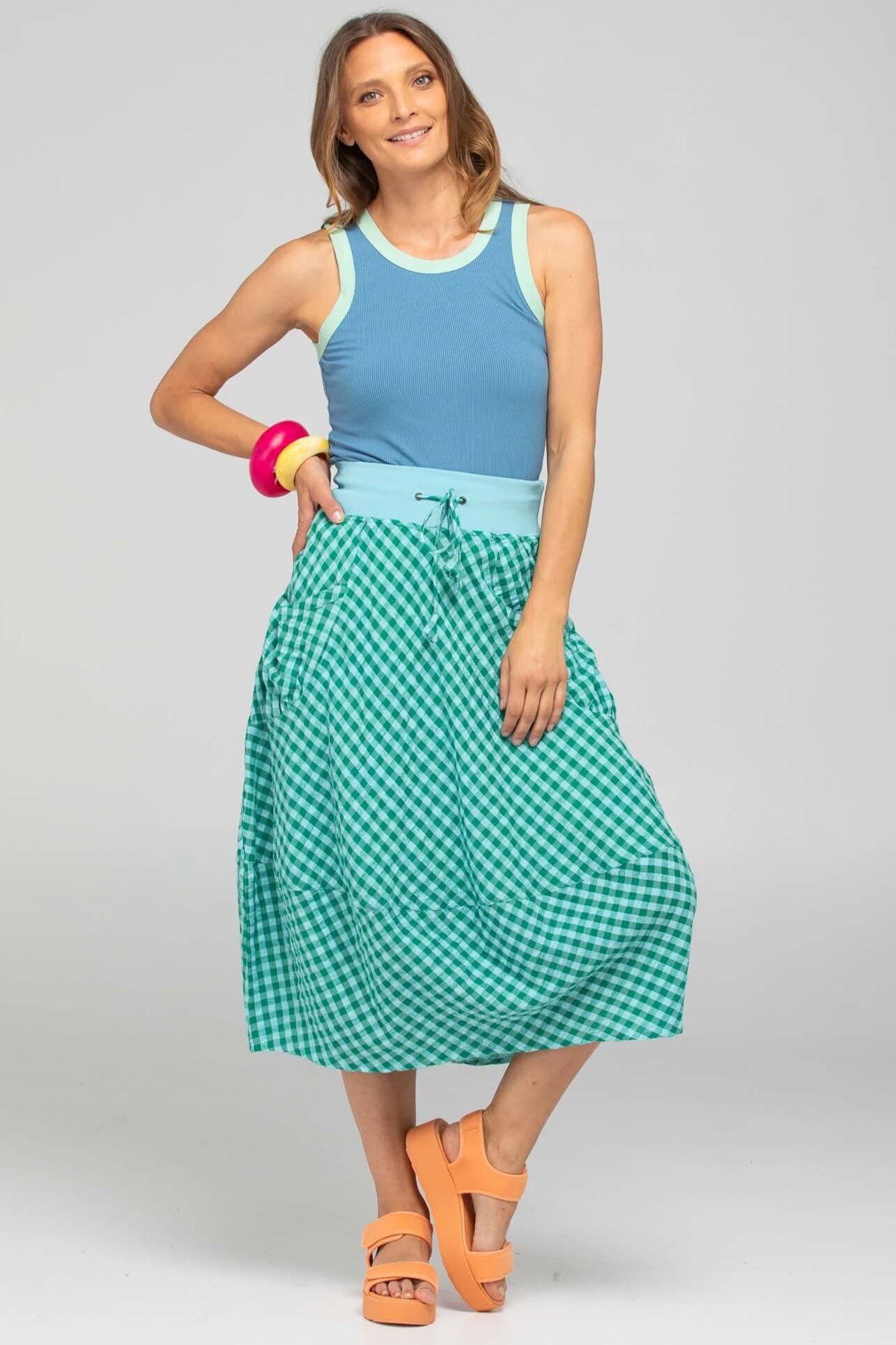 The Boom Shankar Guru Skirt is a 3/4 length cotton beauty with a super comfortable stretch cotton waistband. The Guru Skirt is a versatile and easy-to-wear option for all shapes and sizes.