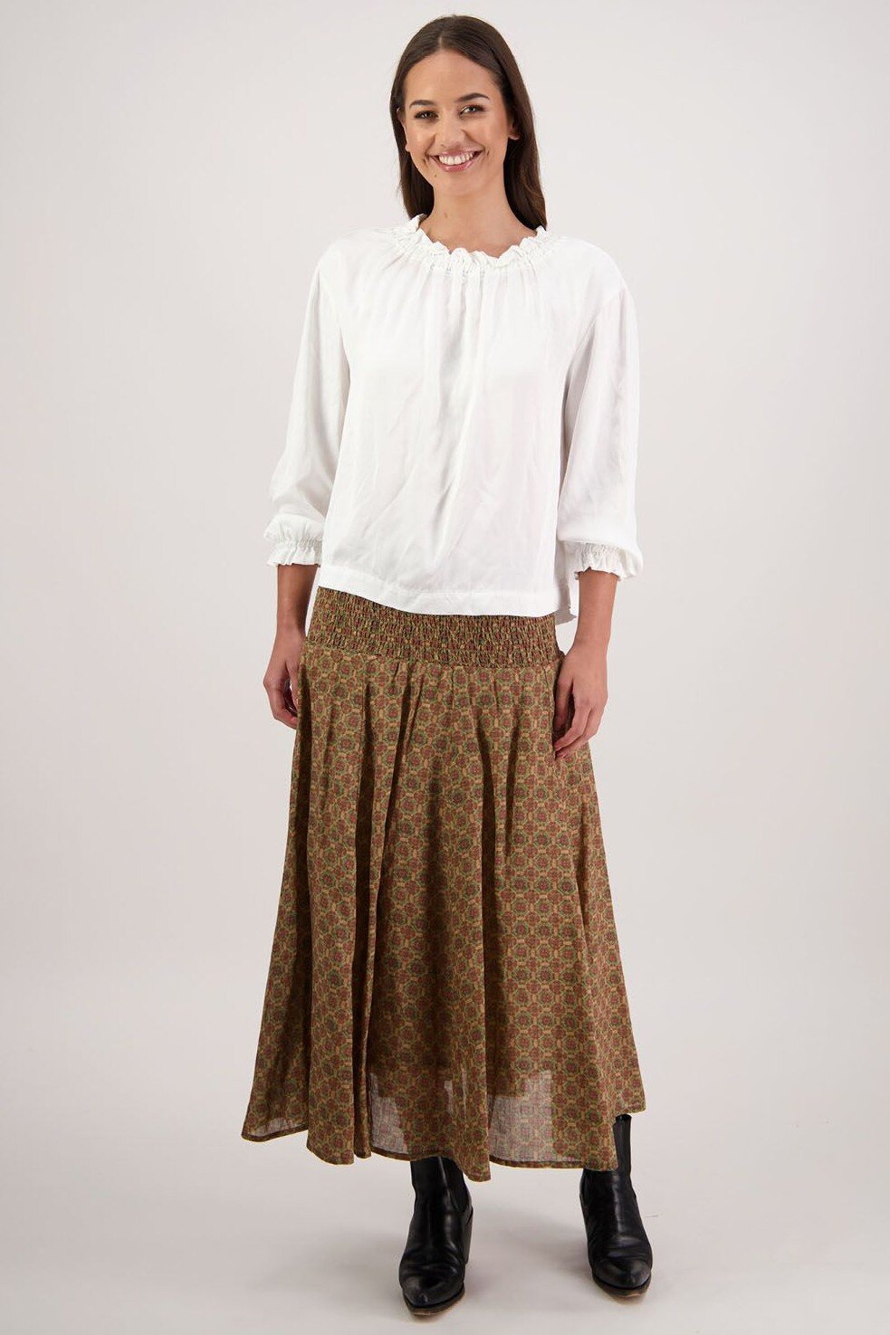 Shirred waist skirtCotton liningFull lengthComposition: 100% Ramie