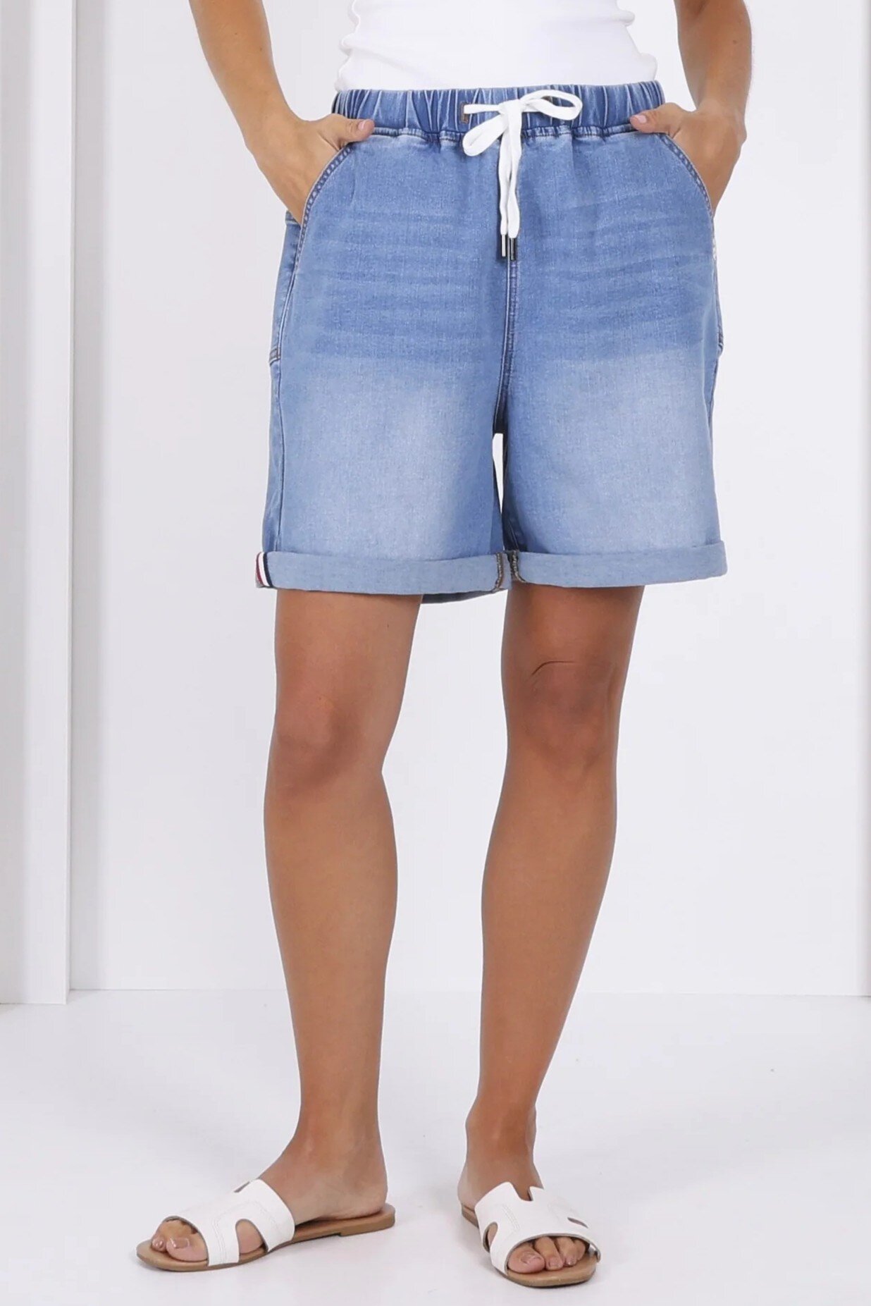 Because some of us just cannot do without denim shorts! The Hugo Denim Shorts designed by Monaco Jeans redefine comfort! These beautiful shorts are made from super stretchy fabric that is light weight yet excellent quality. Add these to your list of wardrobe staples for comfort and effortless style! Featuring an elastic waist with drawstring, slimming relaxed leg that finishes at the ankle and a very on-trend side and back pocket designs.