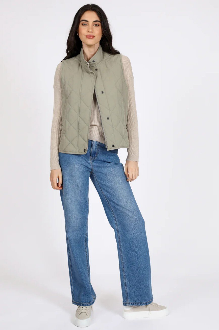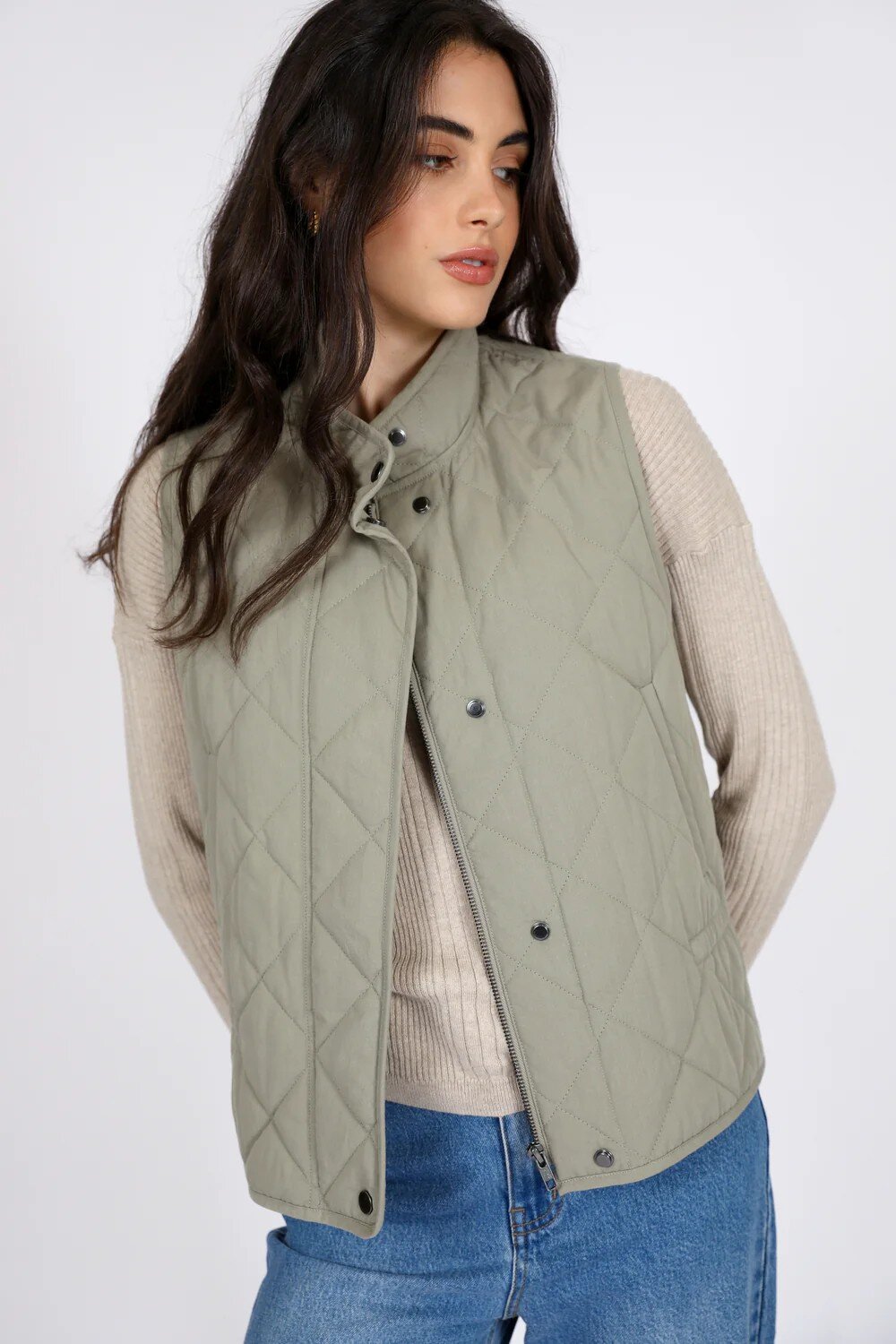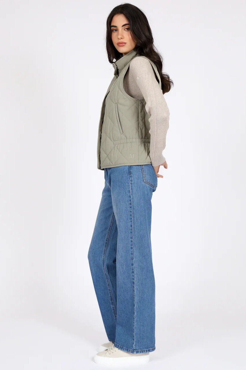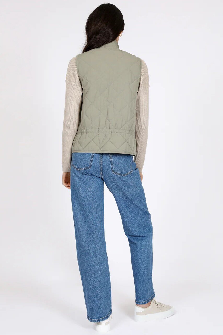 The Kyoto Quilted Vest in Spruce is a lightweight, sleeveless layer crafted from a conscious blend of cotton, Tencel, and linen, completed with 100% recycled polyester wadding for warmth. Perfect for trans seasonal versatile wear, it features a neat stand collar, YKK zip, and a snap-front placket for a streamlined finish. A gently elasticated waist creates a flattering silhouette, making this piece an effortless layer for everyday wear.