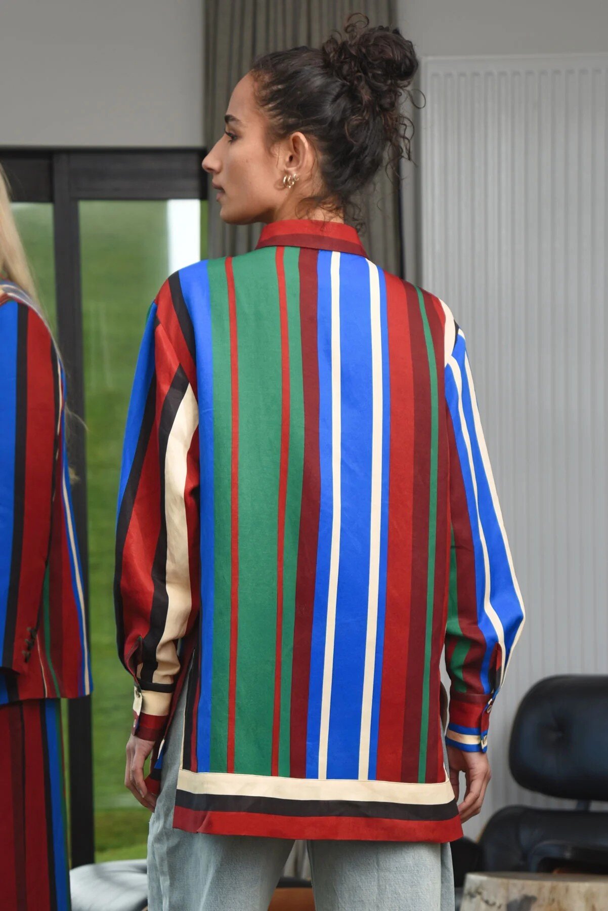 Cut in the ‘Colour me Impressed’ linen viscose fabrication, the ‘Let the Sun Shine’ shirt brings a playful twist to classic tailoring. The fluid silhouette contrasts with the structured print, creating a look that feels both laid back and directional. Featuring a button through design, cuffed sleeves, and side splits, wear this shirt on its own or as part of a striking set with the matching ‘Walk with Me’ pant. Preppy meets high fashion with effortless ease.