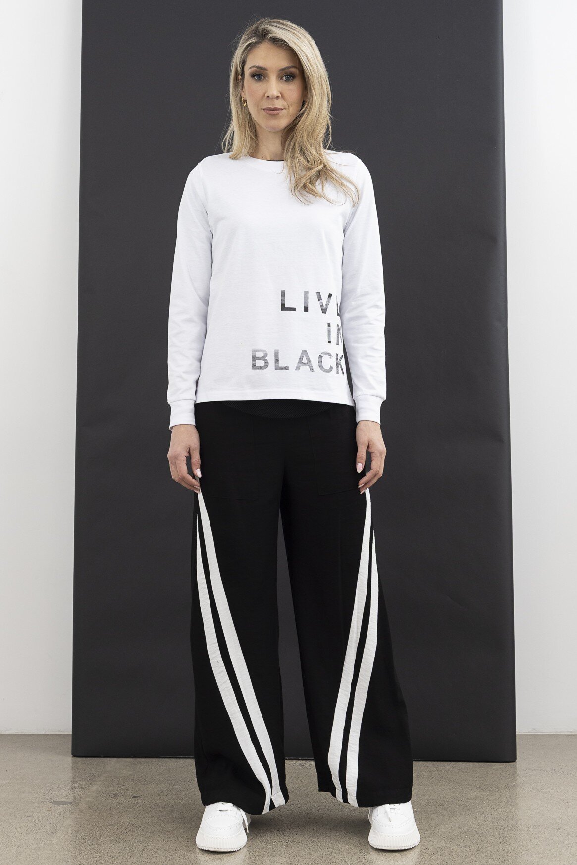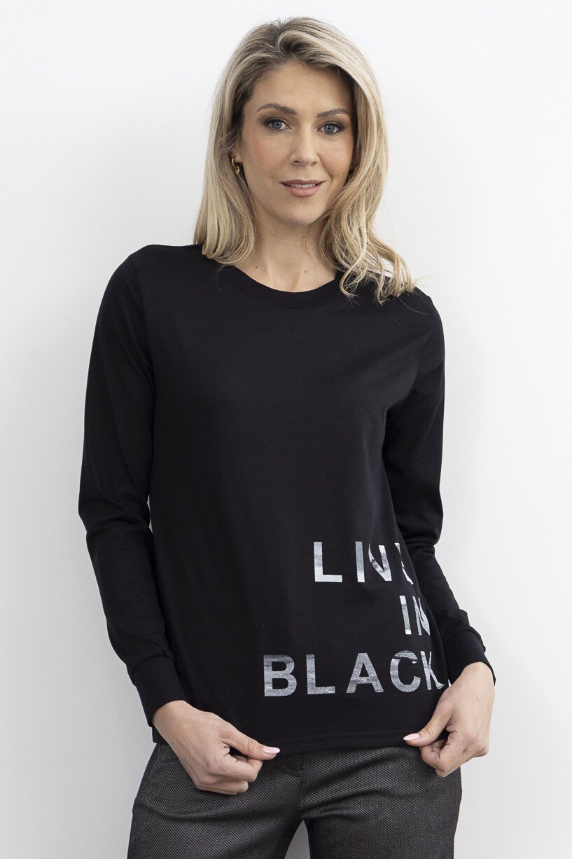 The Live in Black Tee is here to support your everyday style with comfort and ease. Crafted from soft cotton fabric, this long-sleeve tee features a relaxed fit that gently shapes around your body - square cut at the hem and through the bodice to sit just above the hip. A understated graphic adds visual interest without overwhelming your look. Whether you're wearing it solo or layering it with other pieces, this tee adapts to your needs and your mood. We recommend sizing up if you prefer a roomier fit.