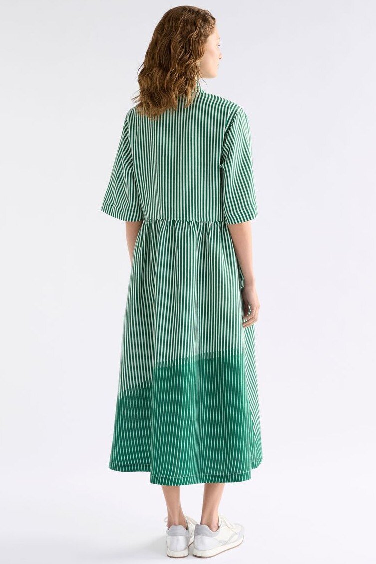 The Llinen Light Dress redefines relaxed elegance. This shirt dress features a button through design and collar, flowing into A-line silhouette with a gathered skirt. A mid to long length dress with flattering elbow length sleeves and two chest patch pockets. Your new go-to-spring-summer piece.