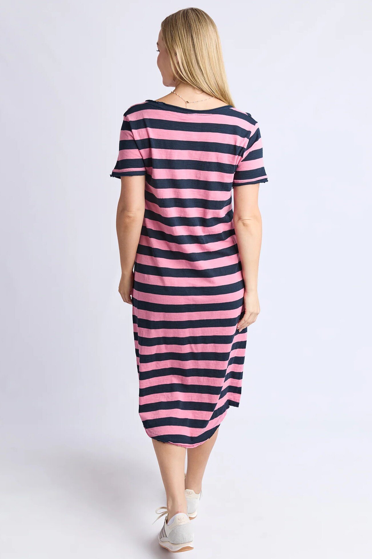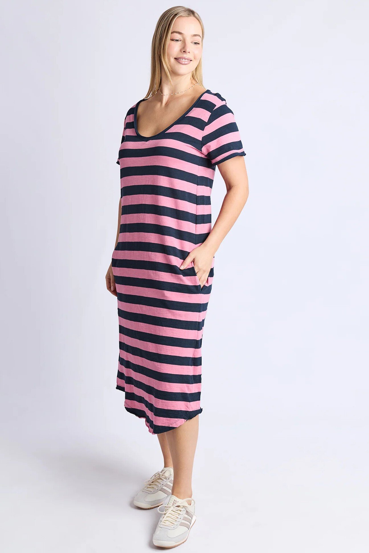 Made from super soft 100% cotton, the Maeve Midi Dress is the perfect throw-on dress for those warm summer days. It features a rough edge v-neck and scoop hemline for effortless everyday wear.