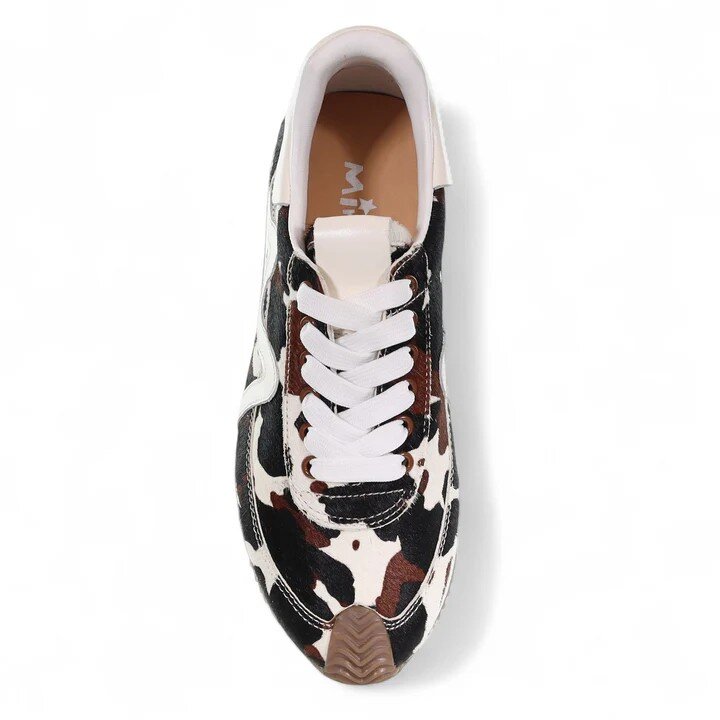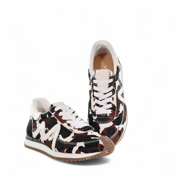 Smooth leather trims and a signature “M” side detail elevate the design, while the layered contrast rubber sole wraps around the front for a modern, sporty edge.