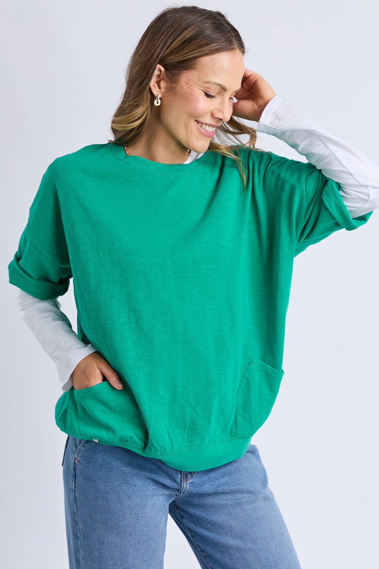 The Mazie Sweat is the ideal blend of style and versatility. This oversized fit and 3/4 length sleeves allow plenty of room for movement. Made with a gorgeous lightweight cotton fabric to make it ideal for layering.