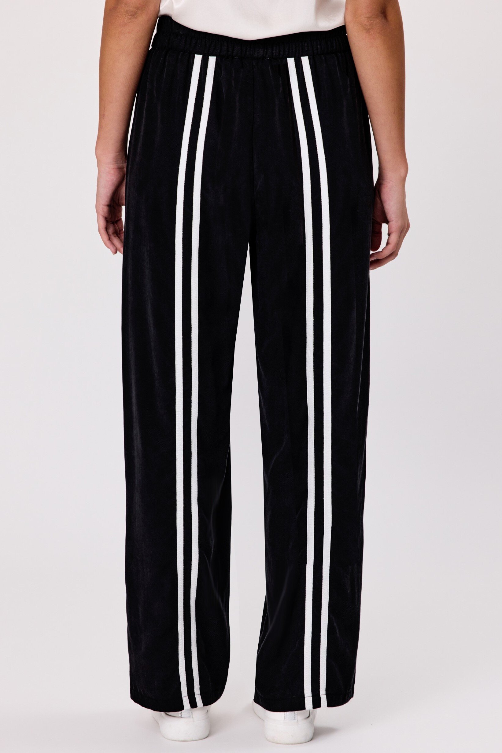 The white trim consists of two vertical white stripes running down the sides of each front and back leg, giving the pants a sporty and casual look.