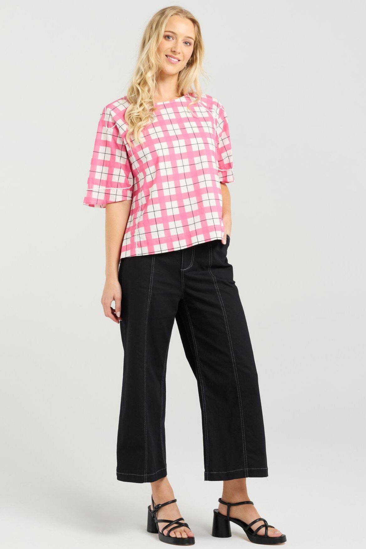 A contemporary take on the classic shell top, this short-sleeved style blends clean lines with subtle fashion detailing. Cut from crisp cotton for a lightweight yet structured feel, it features a not-quite-tee silhouette - streamlined and elevated. Contrast tape accents add a refined edge, offering a directional finish that makes this a wardrobe must have.