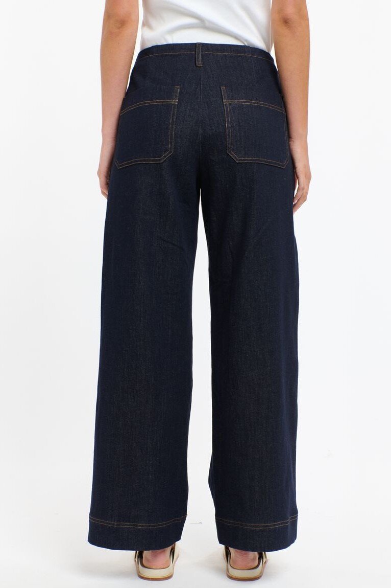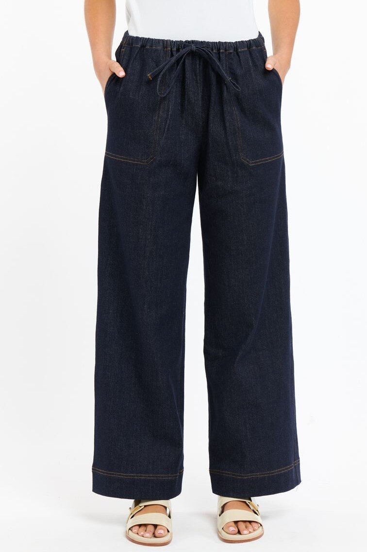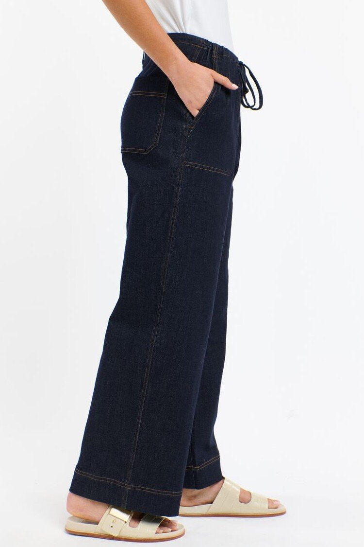 Effortlessly cool and endlessly comfortable - these wide-leg pants are your new wardrobe essential. The adjustable drawcord waistband offers a custom fit, while oversized front patch pockets and classic back pockets add a practical edge. Finished with contrast stitching, this piece combines utility details with a refined, contemporary look.