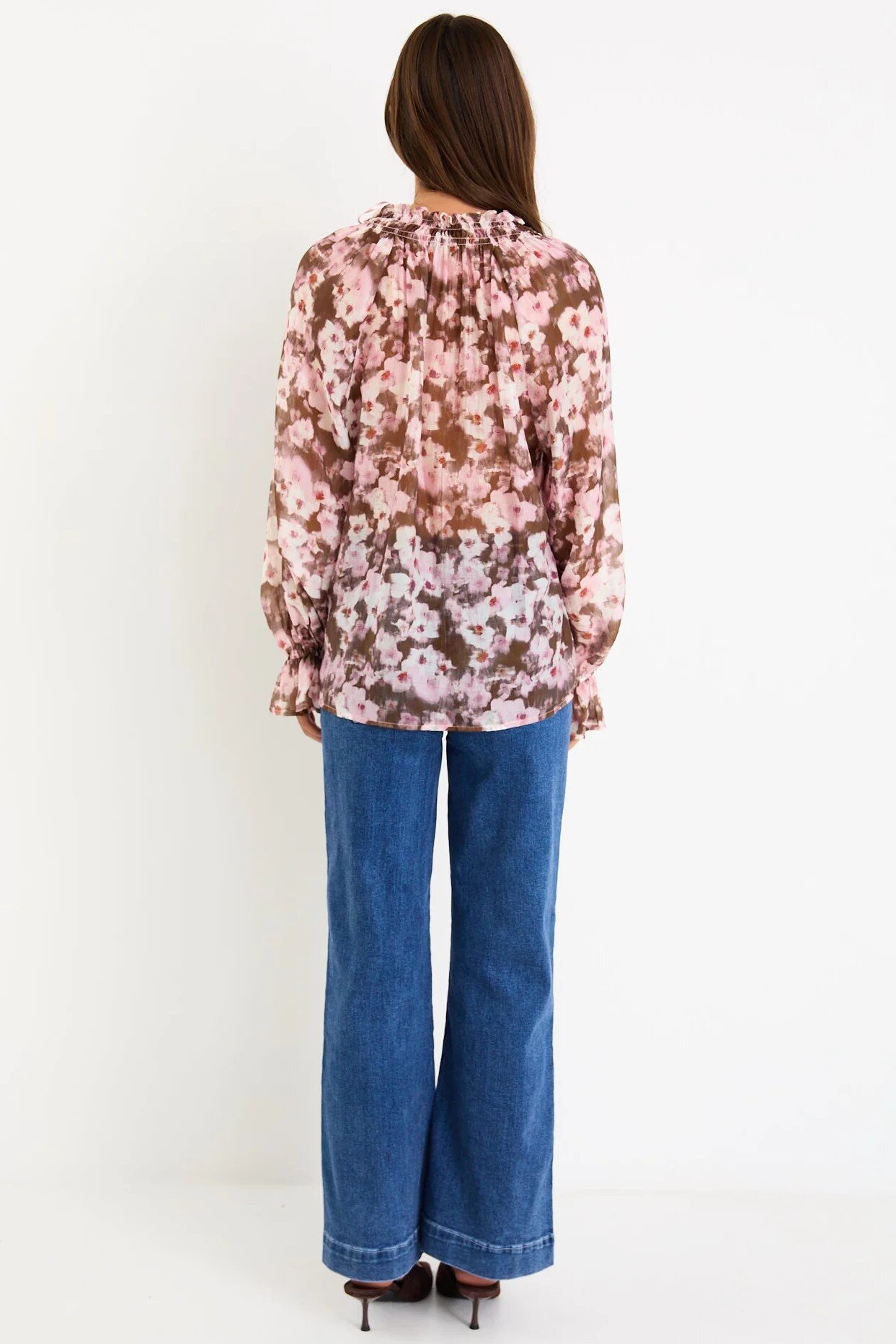 The Odyssey Top brings romantic movement to your wardrobe with its soft, painterly floral print in blush and chocolate tones. The shirred neckline and floaty sleeves create an effortless drape that feels both feminine and modern, while the lightweight fabric gives it a beautiful sway with every step. Easy to style with denim or tailored pieces, it’s an instant way to elevate your everyday looks.