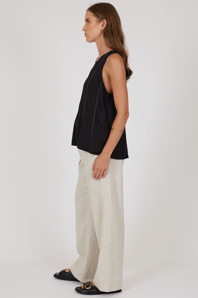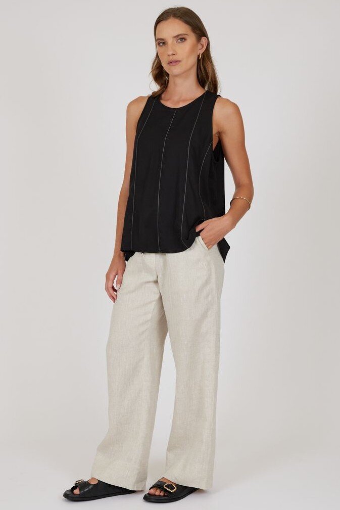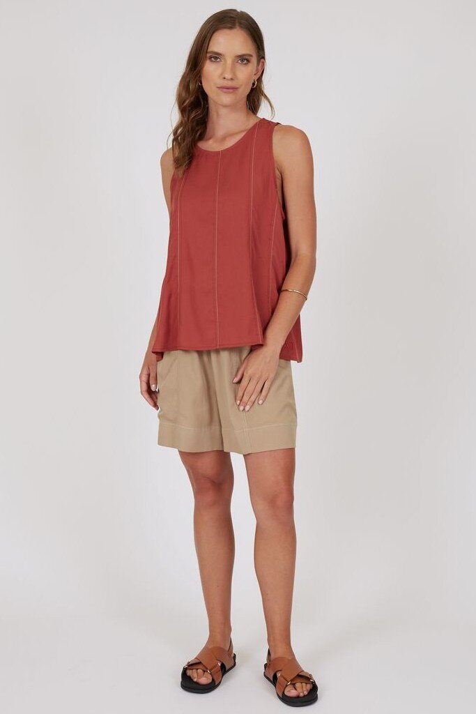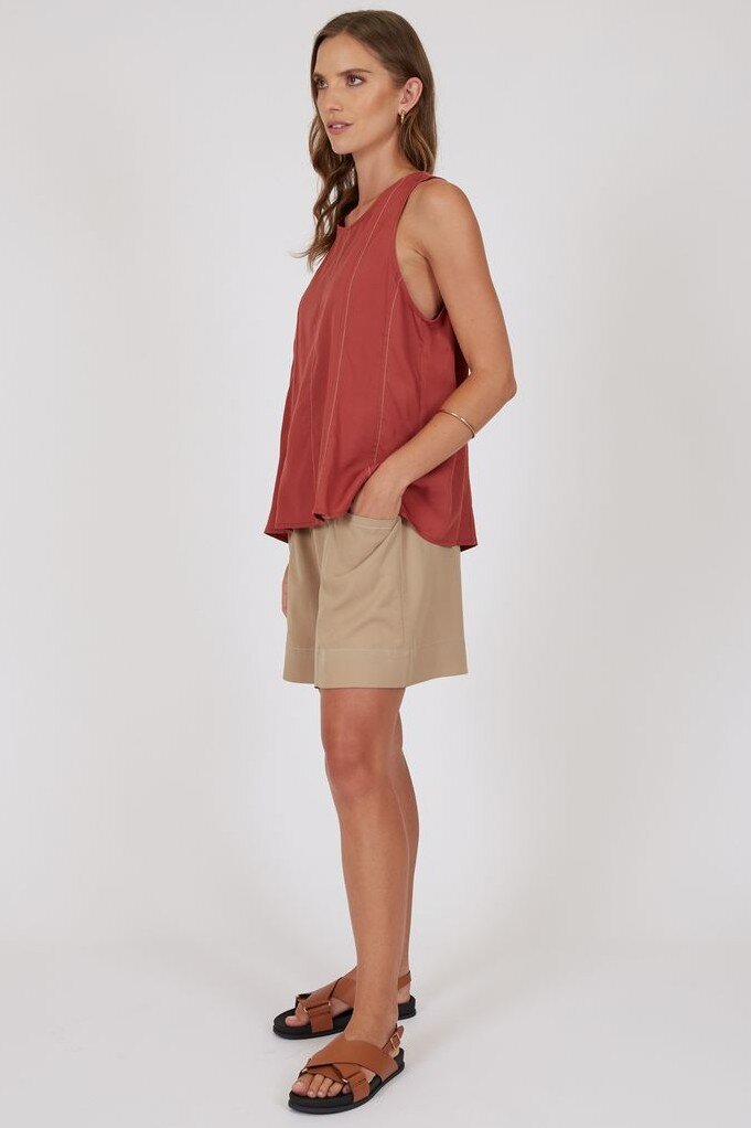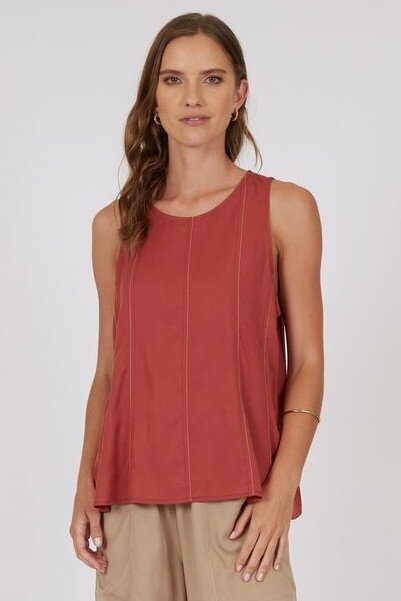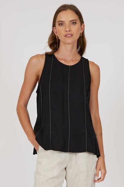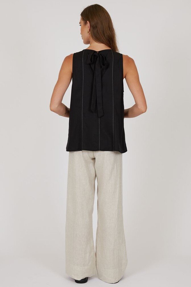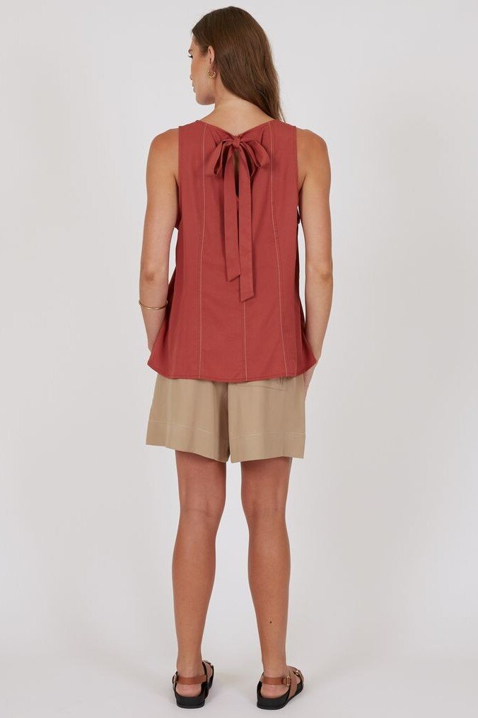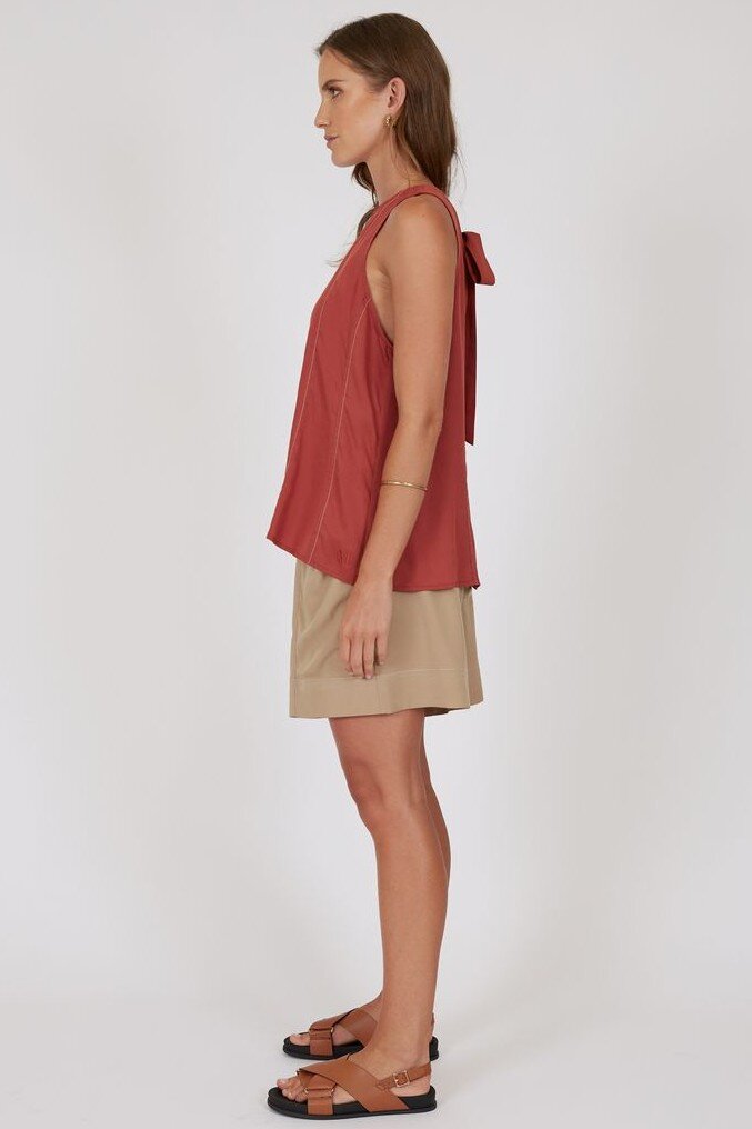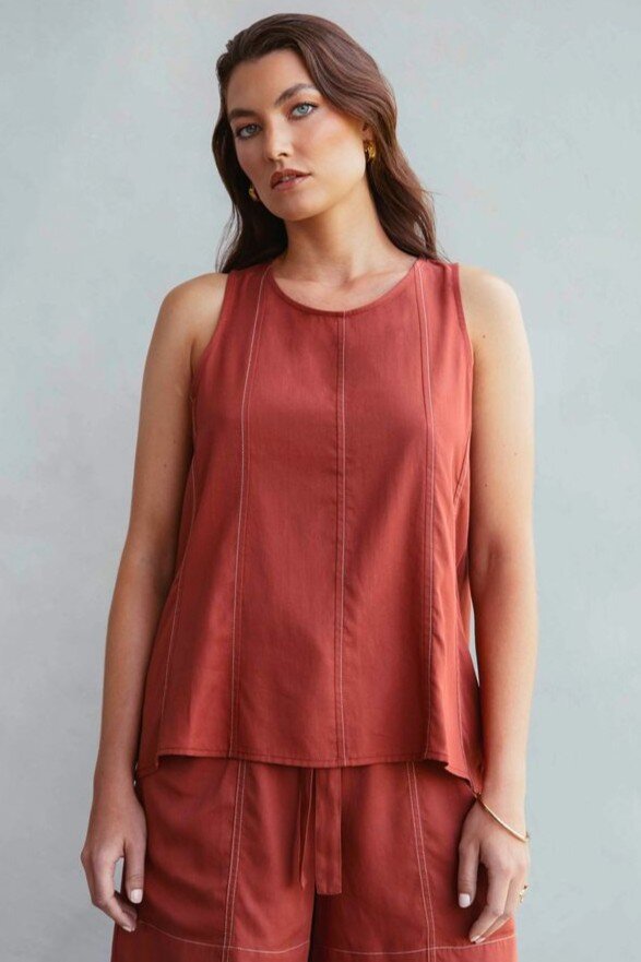 From the desk to the beach, the Palma Shell Tank is a relaxed and flattering shell top you’ll live in all summer. Crafted from 100% Tencel, it’s soft against the skin with a fluid drape that moves beautifully with you. Designed with a sleeveless silhouette and crew neckline, it features contrast topstitching that defines the panel construction, finished with a back keyhole closure and statement fabric bow for a feminine touch.