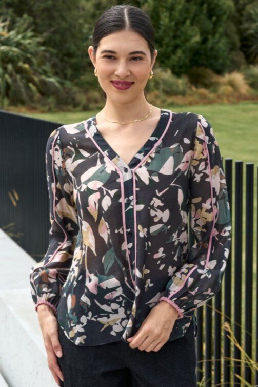 Beautiful V-neck blouse with piping detail