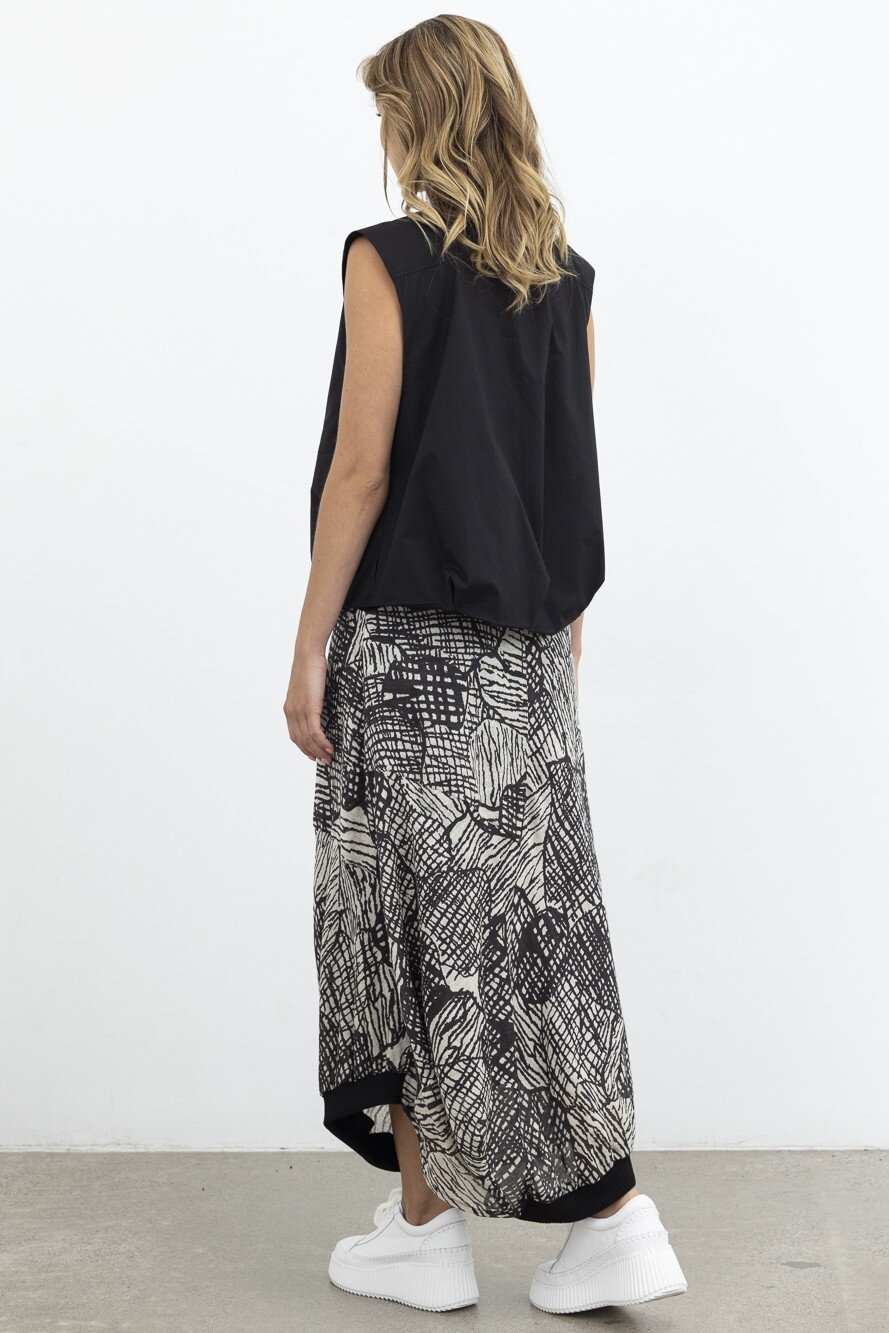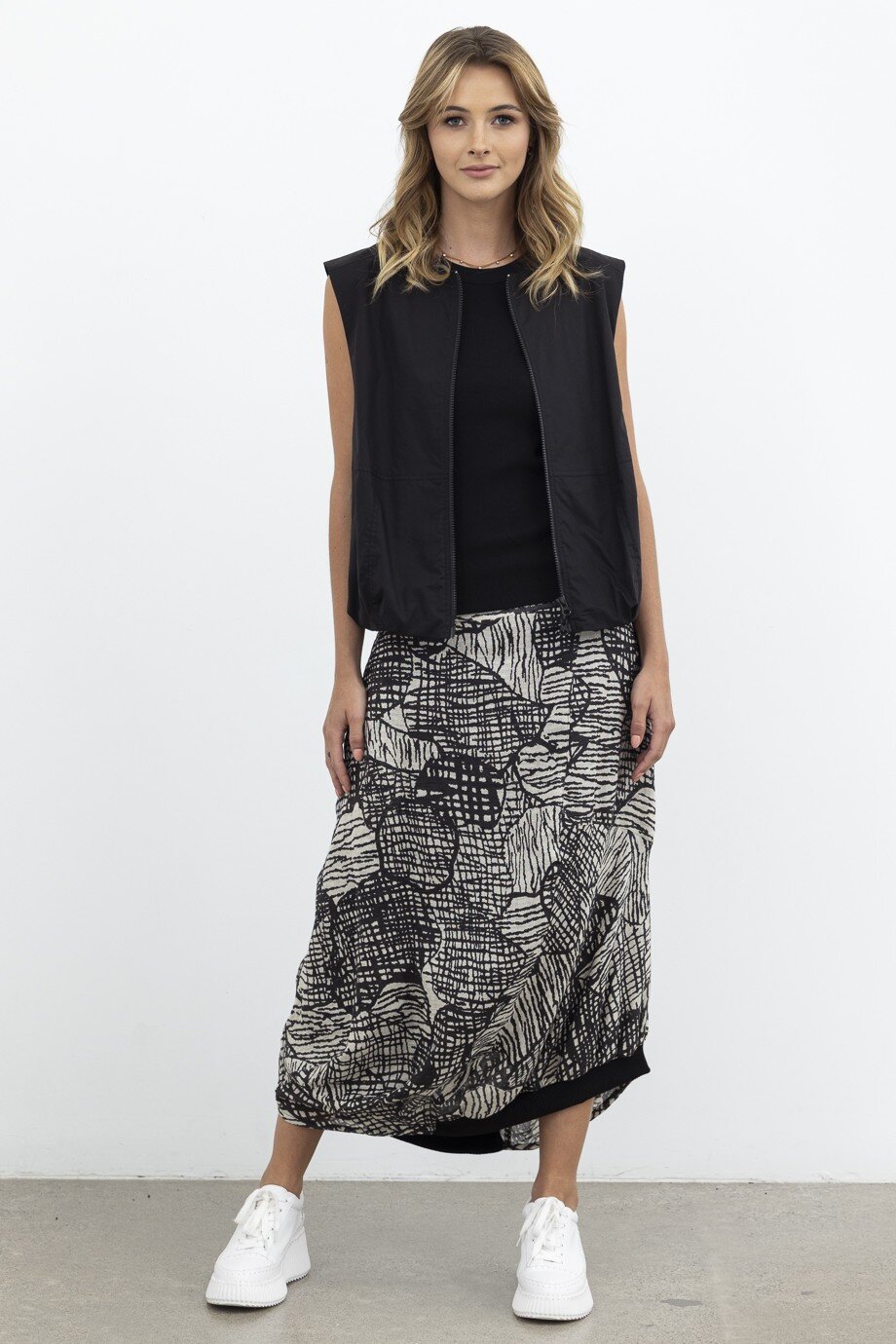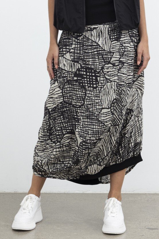 The Pixelated Pattern Skirt brings an artful twist to your everyday styling. Designed with a bold monochrome print and a softly structured silhouette, it moves beautifully with every step while keeping a modern, urban edge. The ribbed hemline adds a hint of casual cool, making it perfect to dress up or down.