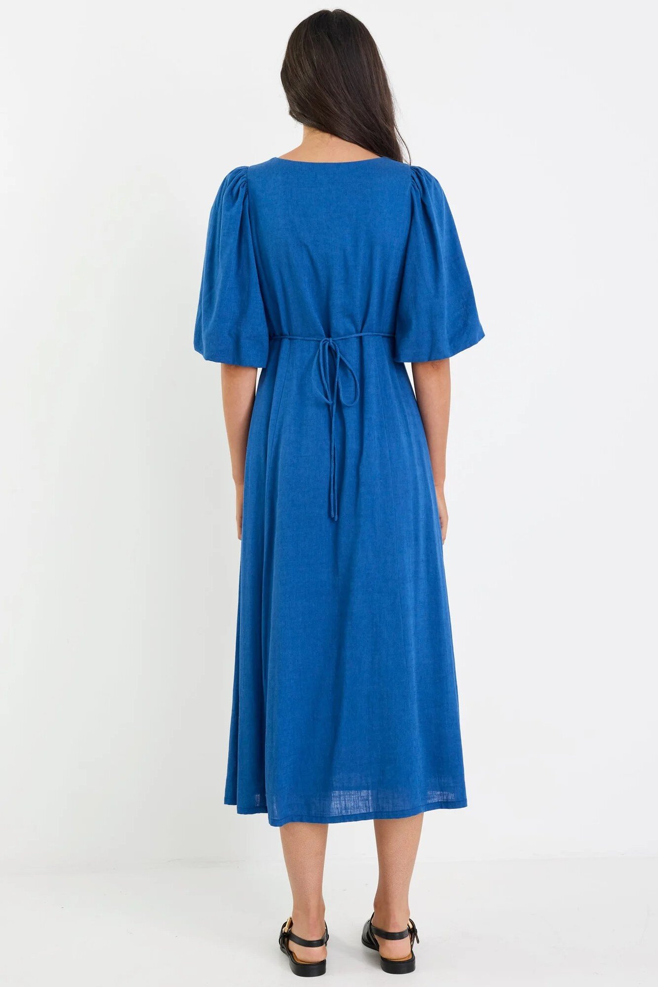 Port True Blue Mid Sleeve Button Front Midi Dress