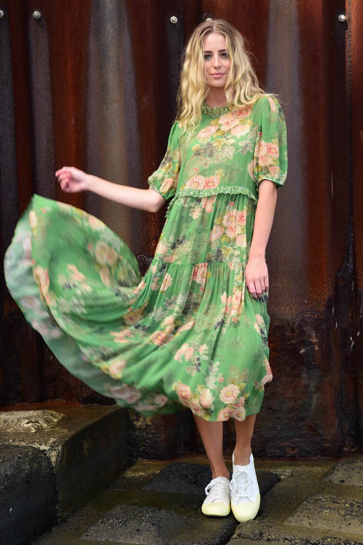 Designed in the romantic ‘In Bloom’ floral viscose georgette, the ‘Pure Imagination’ dress is the perfect piece to take you from the office to your evening plans. Featuring a fun ruffle neckline, puff sleeves and a tiered skirt. Pair this with sneakers for a casual weekend look or dress it up with your favourite heels.