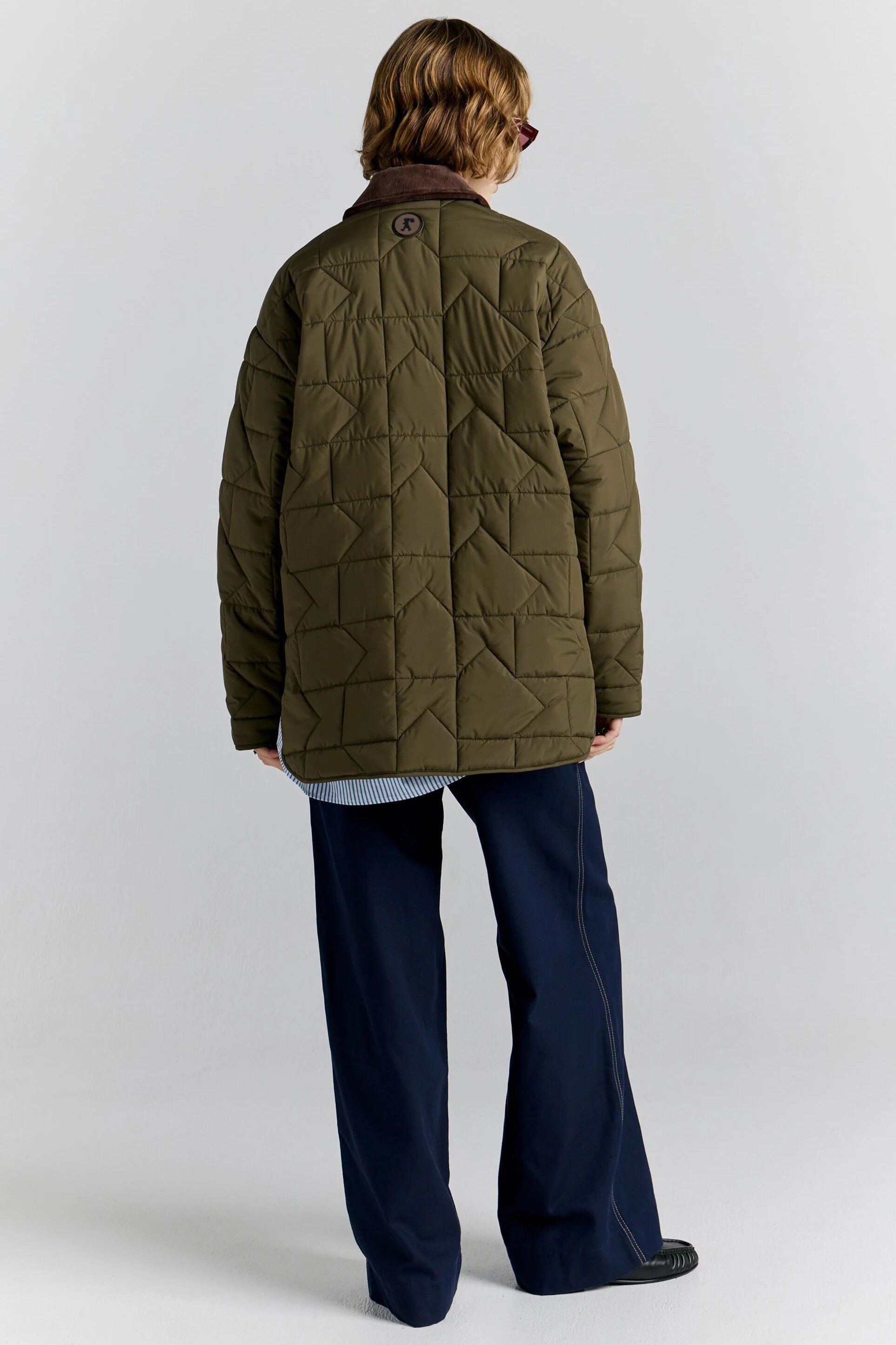 The Ridge Jacket is a lightweight padded jacket designed for everyday wear, featuring full-length sleeves and a relaxed fit.